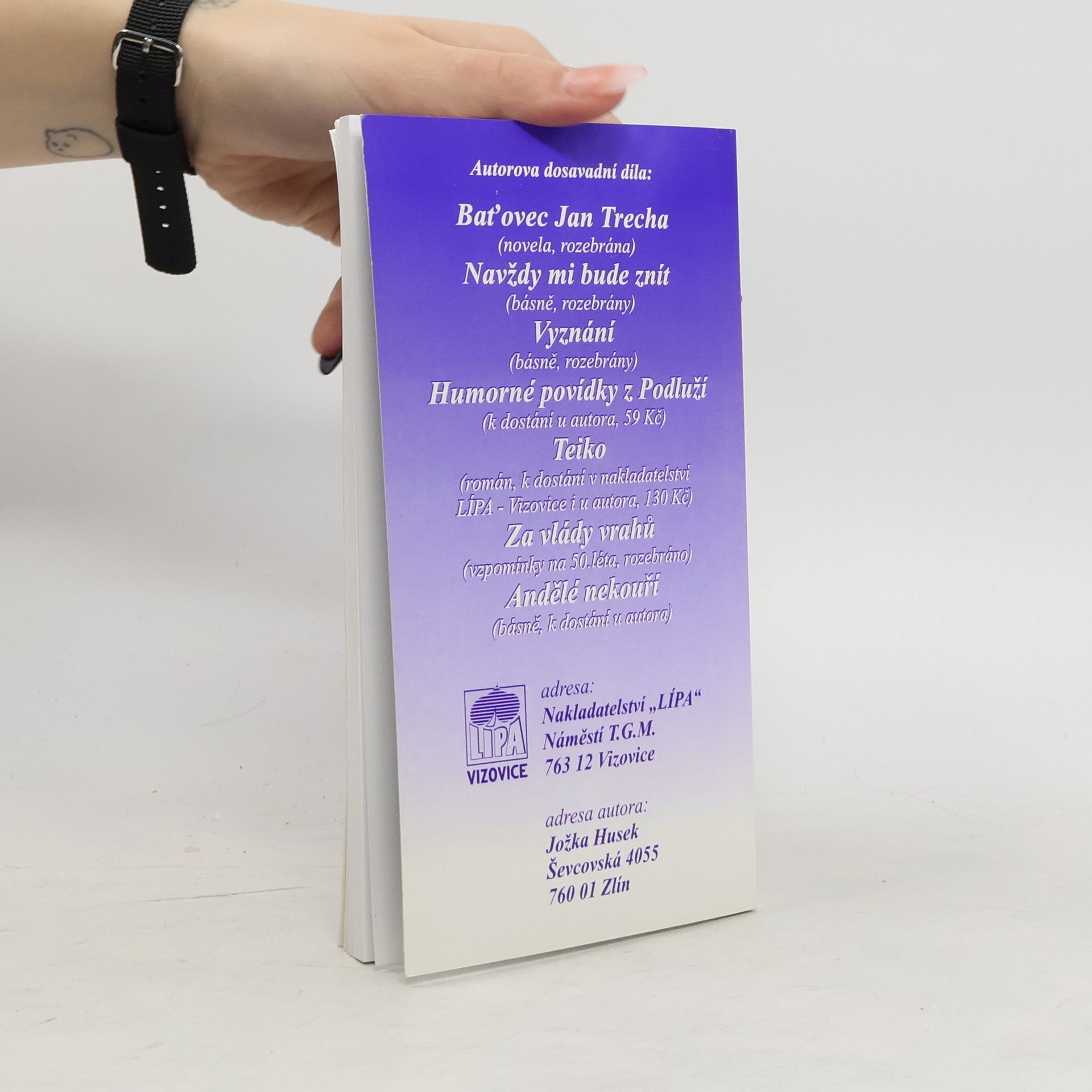 Sbírka básní na témata lásky, lidských vztahů, úvah i básnické korespondence