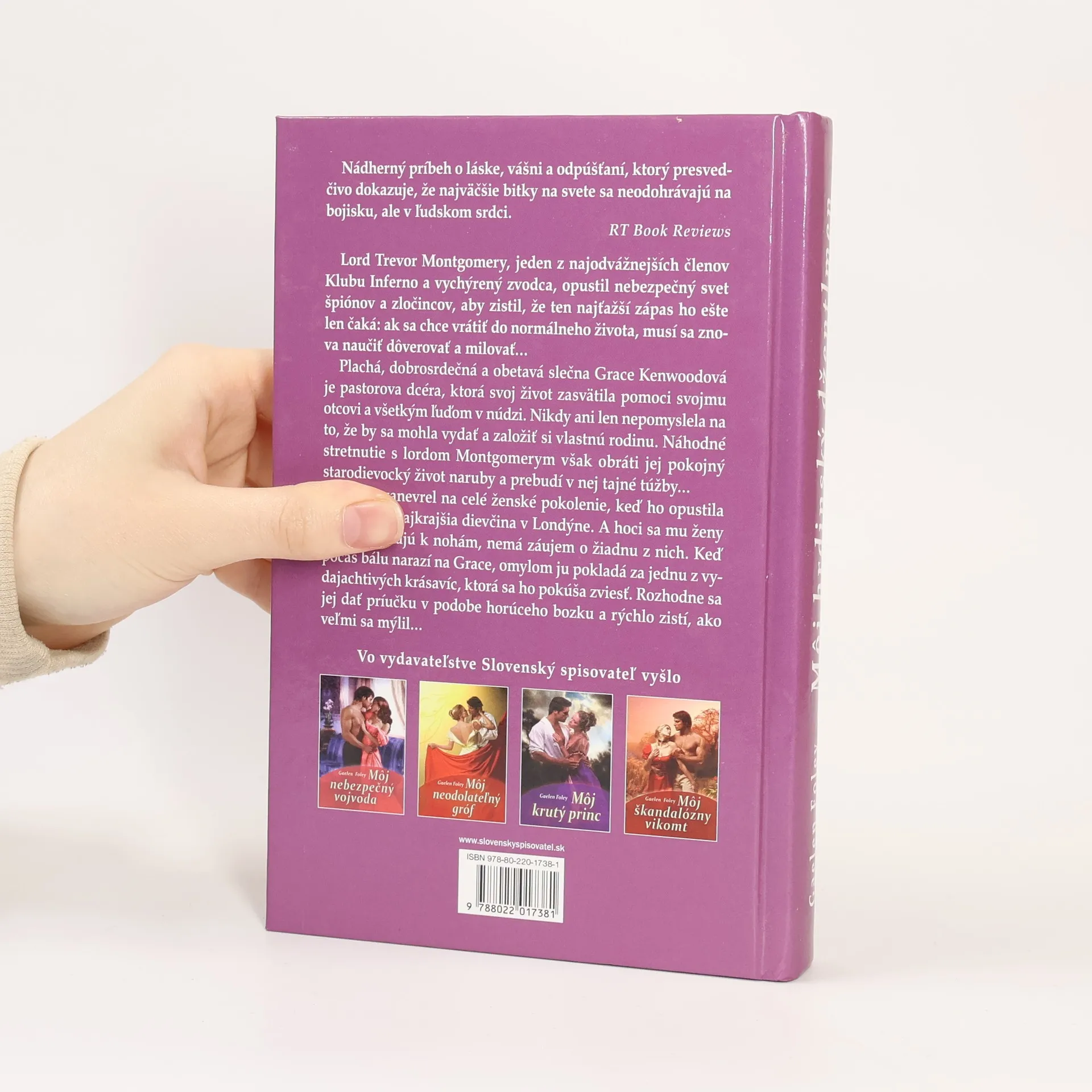 Obľúbená séria o Klube Inferno pokračuje príbehom lorda Trevora Montgomeryho, jedného z najodvážnejších rytierov tajného rádu a vychýreného zvodcu. Keď Trevor opustí nebezpečný svet špiónov a zločincov, zistí, že ten najťažší zápas ho ešte len čaká: ak sa chce vrátiť do normálneho života, musí sa znova naučiť dôverovať a milovať... Grace Kenwoodová, plachá, dobrosrdečná a obetavá pastorova dcéra, zasvätila svoj život pomoci ľuďom v núdzi. Náhodné stretnutie s lordom Montgomerym však obráti jej pokojný starodievocký život naruby a prebudí v nej tajné túžby...
