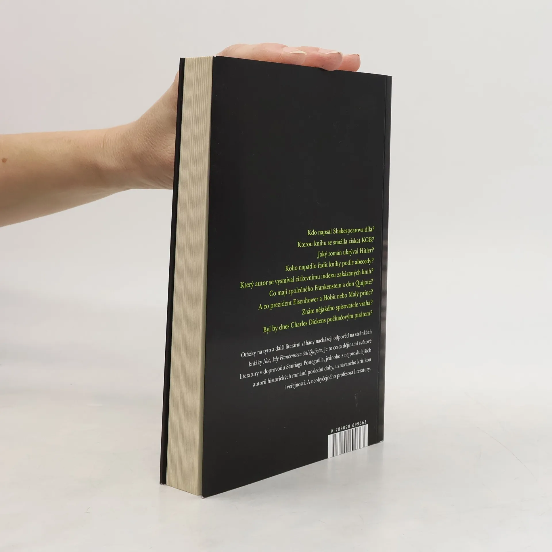Tvář, kterou z literatury všichni vidí, jsou romány, básně nebo divadelní hry. Lícem je to, co světla osvětlují v knihkupectvích a na webových stránkách, to, co září u vchodů do divadel. Co se však skrývá za tím? Tato kniha vede odvážného čtenáře dál za hranici stránek, slov a světel. Ukazuje, co se skrývá za knihami: autory, jejich životy, genialitu a někdy také bídu. Zkoumá otázky jako: Proč existují anonymní knihy? Která kniha nedala spát sovětské tajné službě? Který spisovatel zneklidňoval Gestapo? Jaký román byl nejprve odmítán a posléze se stal bestsellerem? Od narození knihy v mysli autora po její publikaci prochází mnoha náhodnými okamžiky, inspirací a často i utrpením. Kdo napsal Shakespearova díla? Jakou knihu se snažila získat KGB? Jaký román ukrýval Hitler? Kdo přišel s myšlenkou řadit knihy podle abecedy? Co mají společného Frankenstein a don Quijote? Otázky na tyto a další literární záhady nacházejí odpověď na stránkách této knihy. Je to cesta dějinami světové literatury s Santiagem Posteguillou, uznávaným autorem historických románů a neobyčejným profesorem literatury.