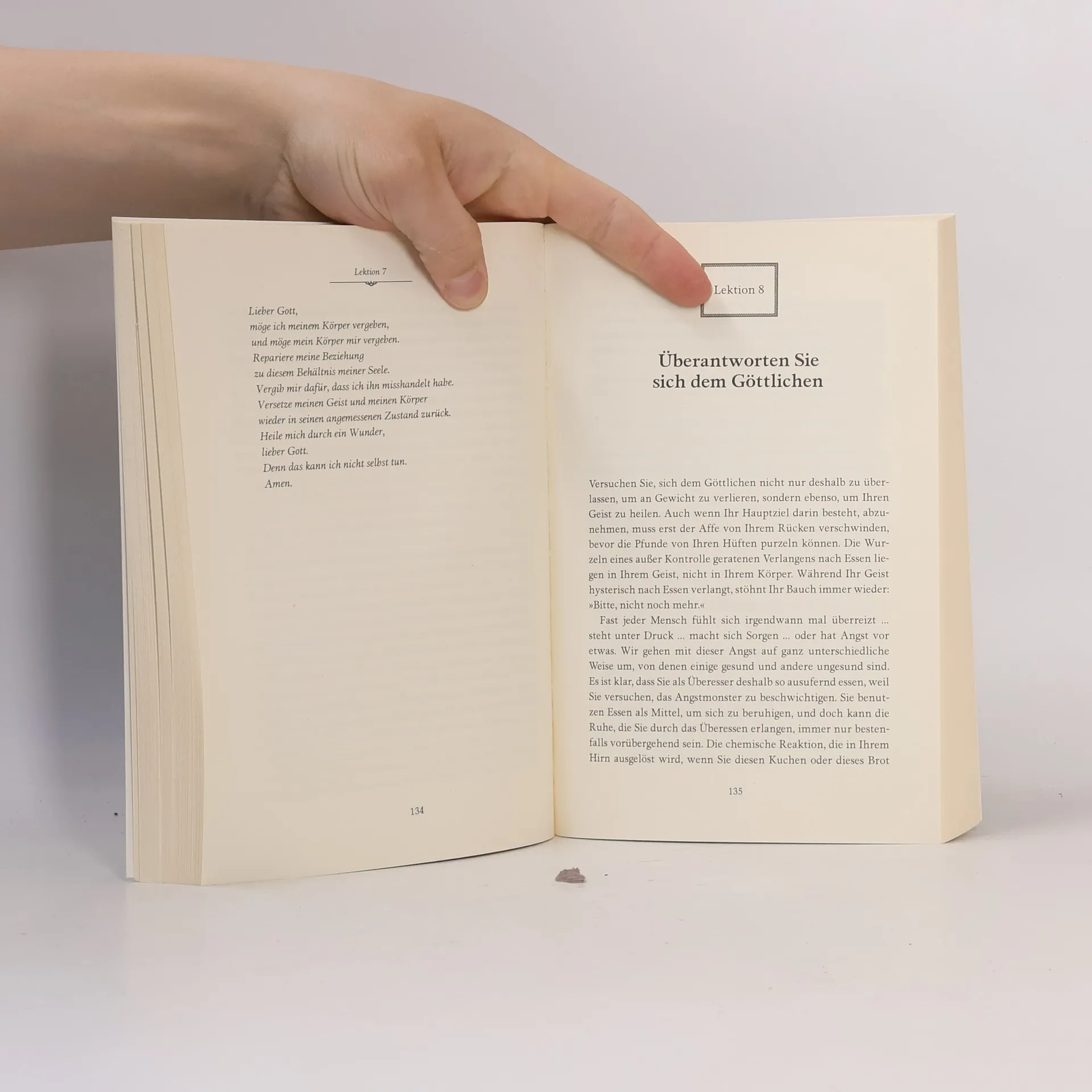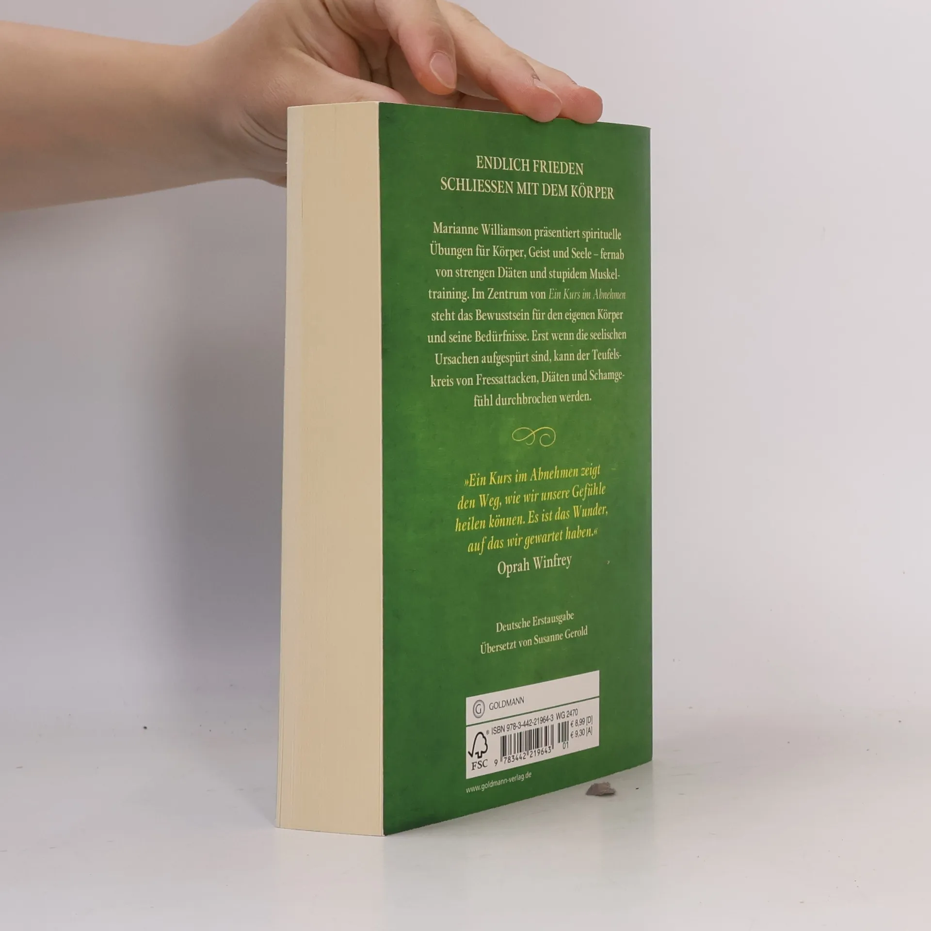 Für alle, die mit dem Essen und ihrem Körpergewicht Frieden schließen wollen Viele Menschen leiden unter Esssucht. Das Gefühl der Ohnmacht, keine Kontrolle mehr über sich selbst zu haben, ist allgegenwärtig und stürzt die Betroffenen oft in eine schwere Krise. Marianne Williamsons „Kurs im Abnehmen“ enthält Übungen für Körper, Geist und Seele, die mit strengen Diäten oder sturem Muskeltraining nichts gemein haben. Vielmehr wird das Bewusstsein für den eigenen Körper und seine Bedürfnisse geschult. Durch Aufspüren der seelischen Ursachen gelingt es, die Endlosschleife von Fressattacken, Diäten und Scham zu durchbrechen.