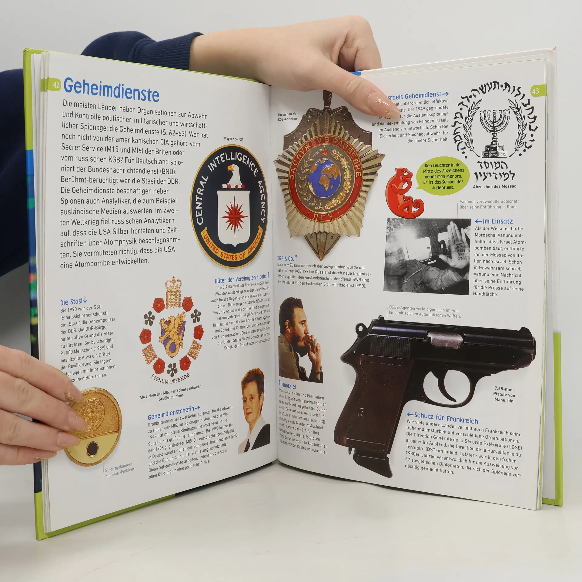 So spannend kann Wissen sein! Die beliebte Kindersachbuchreihe „memo Wissen entdecken“ präsentiert das Thema Spione in kurzen, lesefreundlichen Texten und detailreichen Bildern. Das frische Layout wird von dem neugierigen Chamäleon Lexi begleitet, das spannende Details erklärt und überraschende Infos bereithält. Ein beidseitig bedrucktes Poster mit einem spektakulären Foto und informativer Grafik ergänzt das Erlebnis. Das Konzept vermittelt umfassende Informationen über Agentenkoffer, Geheimdienste, Spionageabwehr, Wirtschaftsspionage, Doppelagenten und berühmte Spione auf sachlich kompetente, leicht verständliche und unterhaltsame Weise – ideal für Kinder ab 8 Jahren! „memo Wissen entdecken“ bietet viele großartige Bilder und gut lesbare Texte, ein starkes visuelles Konzept sowie interessante Rekorde, Fakten und schräge Infos. Lexi lenkt die Aufmerksamkeit auf Details, während ein umfassender Nachschlageteil mit Glossar, Zusatzinfos und Tipps zur Vertiefung des Themas bereitsteht. Entdecke die Geheimnisse unserer Welt mit „memo Wissen entdecken“ – Wissen für Kinder, das zum Staunen einlädt! Verfügbar auf Antolin.de.