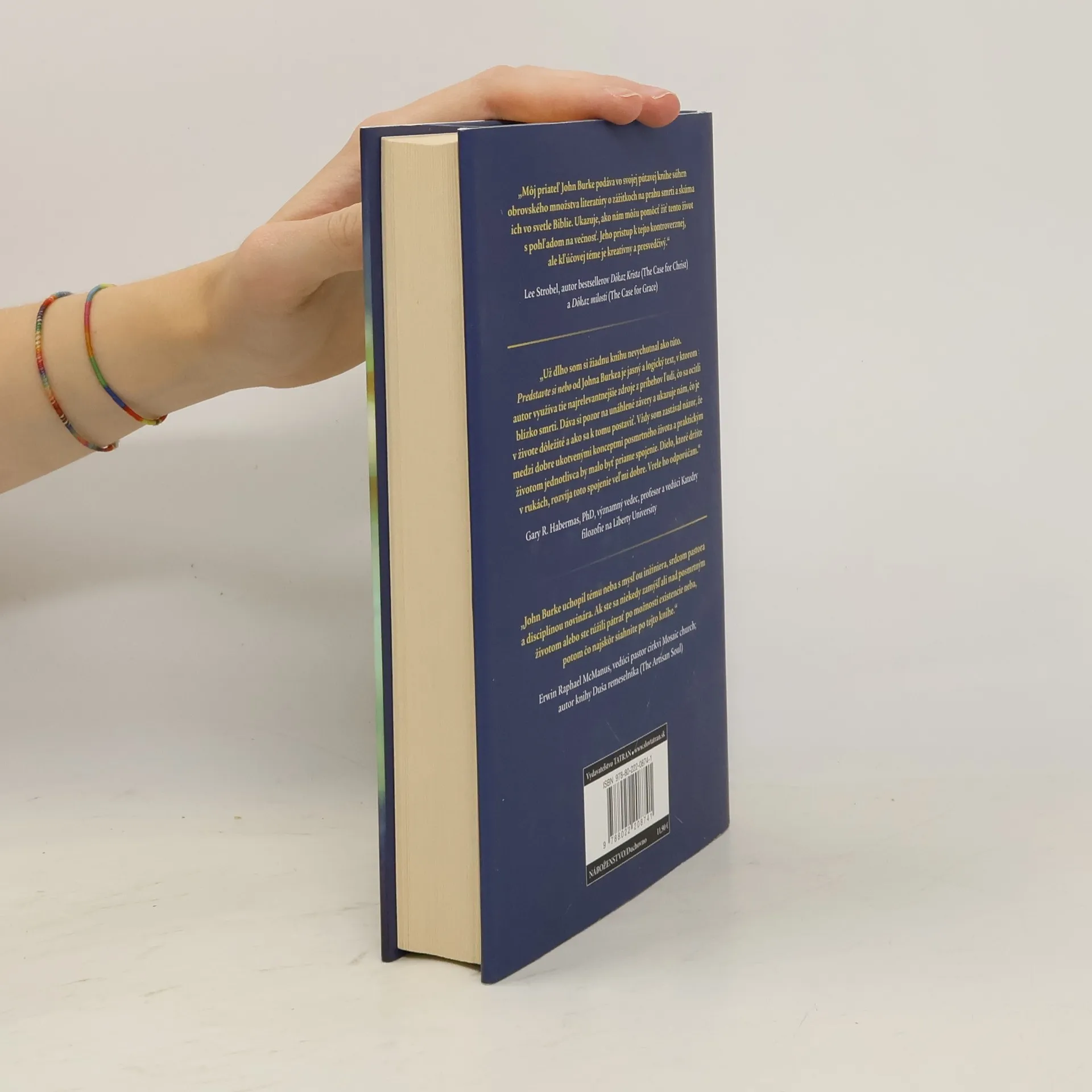 Napínavý a dobrodružný príbeh, fascinujúca detektívka, ktorá odpovedá na životne dôležitú otázku: Čo bude po smrti? John Burke celé štyri desaťročia počúval a zapisoval si príbehy ľudí, ktorí sa ocitli na prahu smrti. Ich fascinujúce zážitky podáva v knihe Predstavte si nebo.Skúsenosti na prahu smrti sú rôznorodé a pritom uchvacujúce: pacienti prechádzajú cez tunel, vnímajú nadpozemský svet, preciťujú bezpodmienečnú lásku v prítomnosti svetla, stretávajú sa so zosnulými príbuznými a v skratke sa im premietne celý život. Je zaujímavé, že ľudia rozličného veku a z iných kultúrnych prostredí opisujú takmer rovnaké zážitky, iní si zasa na nič nevedia spomenúť. Mnohí však zdôtazňujú svoje zostrené vedomie, rozumné uvažovanie, emócie, spomienky z raného detstva, vízie budúcnosti a schopnosť vnímať z pozície mimo tela. Autor majstrovsky a prekvapivo kombinuje rozsiahle údaje z rozhovorov s ľuďmi, ktorí sa ocitli na prahu smrti, s biblickými textami a vytvára uveriteľný obraz toho, ako bude vyzerať život po smrti. Zároveň nám ukazuje, aký veľký význam by mal mať tento obraz na život, ktorý žijeme teraz.