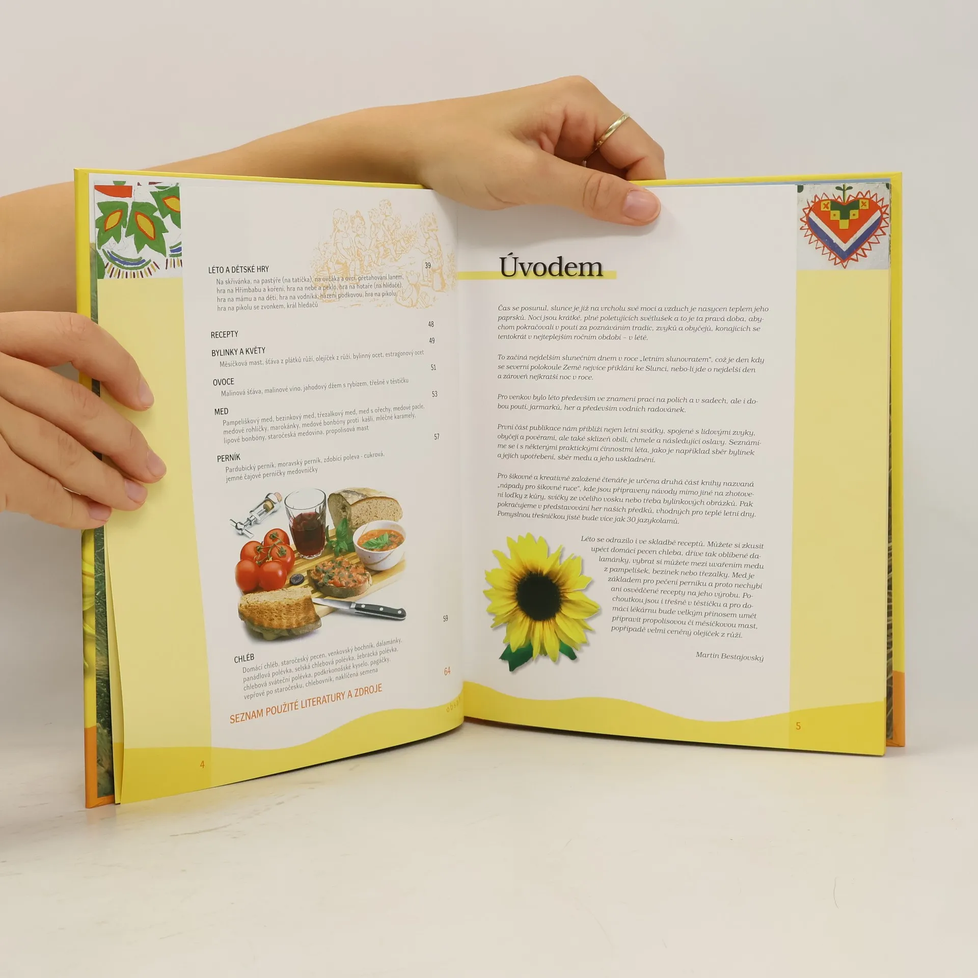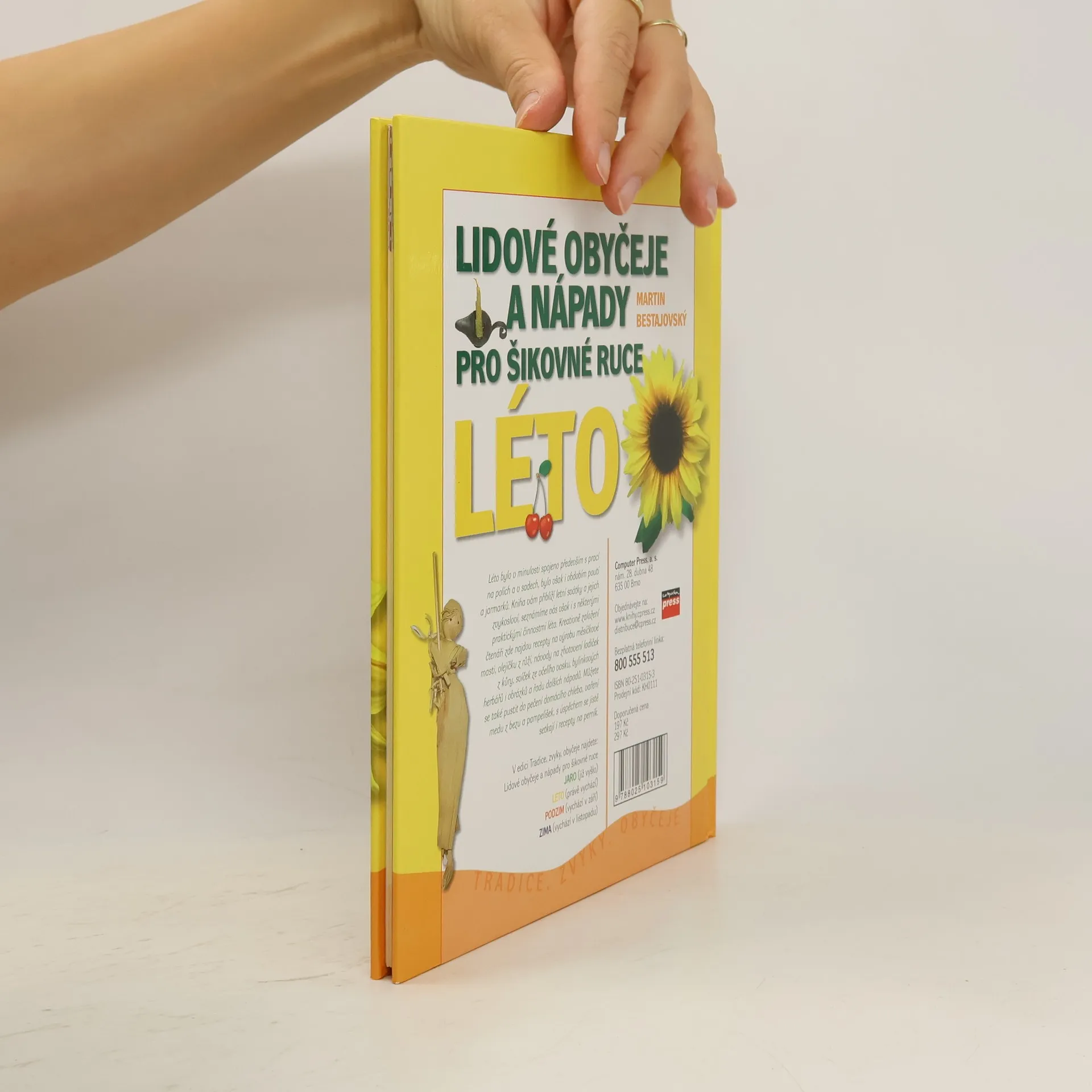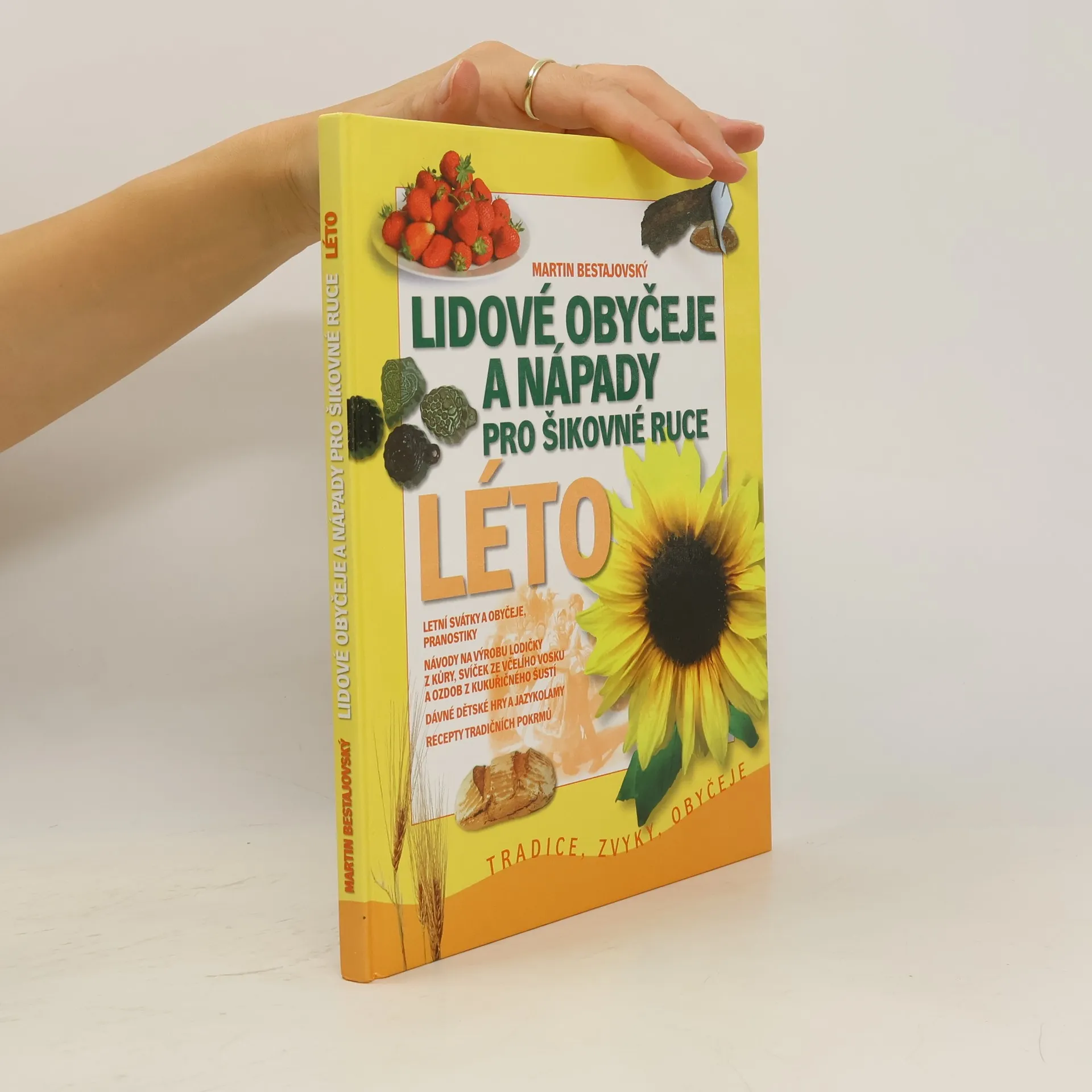 Léto bylo v minulosti spojeno s prací na polích a v sadech, ale také s poutěmi a jarmarky. Kniha přibližuje letní svátky a jejich tradice, a nabízí praktické činnosti. Kreativní čtenáři zde najdou recepty na měsíčkovou mast, olejíček z růží, návody na výrobu lodiček z kůry, svíček ze včelího vosku, bylinkových herbářů a další nápady. Můžete se pustit do pečení domácího chleba, vaření medu z bezu a pampelišek, nebo vyzkoušet recepty na perník. Kapitoly zahrnují přehled letních tradic jako senoseč, svátek Božího těla, svatojánská noc, dožínky a další. Dále se zaměřují na symboly léta, jako jsou bylinky, ovoce, med a chmel. Nabízí také nápady pro šikovné ruce, jako lodičky z kůry, svíčky ze včelího vosku, nebo bylinkové obrázky. Dětské hry jako na skřivánka, přetahování lanem a další zábavy doplňují letní atmosféru. Recepty zahrnují měsíčkovou mast, ovocné šťávy, medové pochoutky, různé druhy perníku a domácí chléb. V edici Tradice, zvyky, obyčeje najdete také jarní, podzimní a zimní svátky.