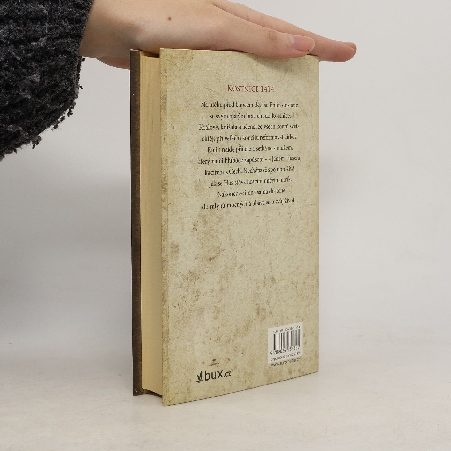 Kostnice 1414 Na útěku před kupcem dětí se Enlin dostane se svým malým bratrem do Kostnice. Králové, knížata a učenci ze všech koutů světa chtějí při velkém koncilu reformovat církev. Enlin najde přátele a setká se s mužem, který na ni hluboce zapůsobí – s Janem Husem, kacířem z Čech. Nechápavě spoluprožívá, jak se Hus stává hracím míčem intrik. Nakonec se i ona sama dostane do mlýnů mocných a musí se obávat o svůj život...