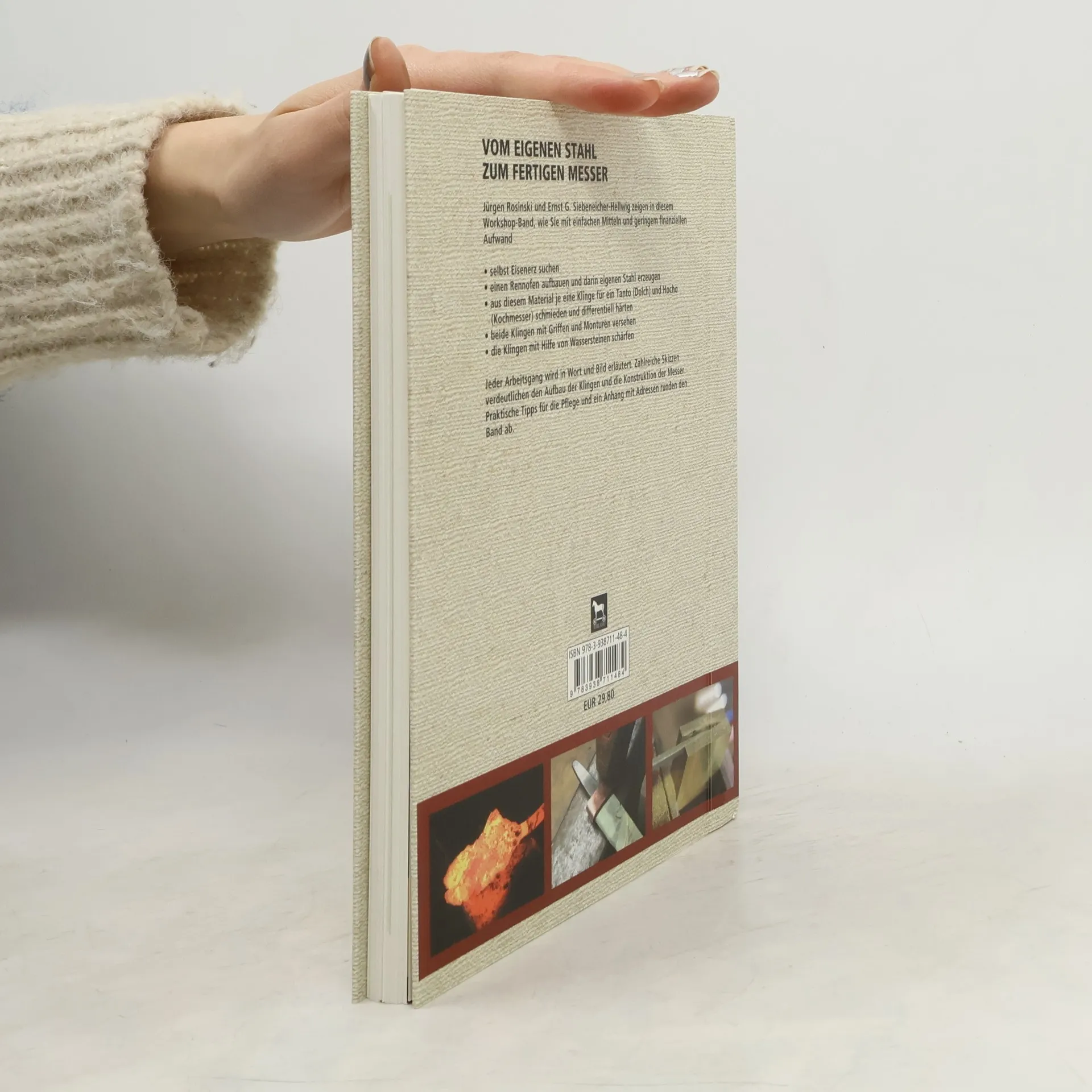 Jürgen Rosinski und Ernst G. Siebeneicher-Hellwig zeigen in diesem Workshop-Band, wie Sie mit einfachen Mitteln und geringem finanziellen Aufwand• selbst Eisenerz suchen• einen Rennofen aufbauen und darin eigenen Stahl erzeugen• aus diesem Material je eine Klinge für ein Tanto (Dolch) und Hocho (Kochmesser) schmieden und differentiell härten• beide Klingen mit Griffen und Monturen versehen• die Klingen mit Hilfe von Wassersteinen schärfenJeder Arbeitsgang wird in Wort und Bild erläutert. Zahlreiche Skizzen verdeutlichen den Aufbau der Klingen und die Konstruktion der Messer. Praktische Tipps für die Pflege und ein Anhang mit Adressen runden den Band ab.