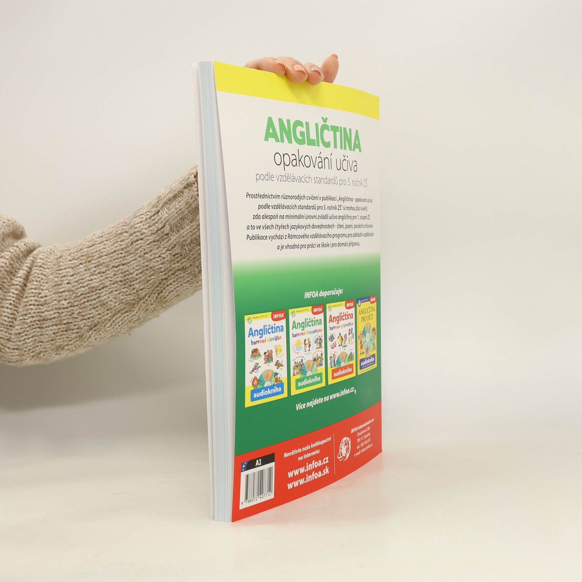 Vážení učitelé anglického jazyka, milí rodiče, připravujeme pro Vás dvě nové publikace, které zopakují učivo nutné k úspěšnému zvládnutí testů z anglického jazyka podle vzdělávacích standardů pro 5. a 9. ročník ZŠ: Angličtina – příprava k testům podle vzdělávacích standardů pro 5. ročník ZŠ vzniká pod metodickým dohledem Mgr. Ludmily Balíkové, která je nositelkou ocenění Evropský učitel jazyků 2008 a na přípravě standardů pro MŠMT se aktivně podílela, a Mgr. Ivy Christodoulou. Knihy jsou koncipovány jako doplňkový materiál k jinému hlavnímu kurzu. Doporučená hodinová dotace pro zvládnutí učiva je 1 hodina týdně po dobu jednoho školního roku. Cílem cvičebnic je ověřit, zda žák skutečně zvládl požadované výstupy pro dané vzdělávací období alespoň na minimální úrovni. Testovány či ověřovány by postupně měly být všechny očekávané výstupy a všechny čtyři jazykové dovednosti – čtení, psaní, poslech a mluvení. Obsahem učebnice jsou: – Seznam indikátorů pro 5. ročník – Témata: 1. It's me 2. This is my family 3. Our house 4. My life 5. My town 6. Holidays and celebrations 7. Clothes 8. Food and drink 9. Human body 10. Animals – Přepis nahrávek – Klíč
