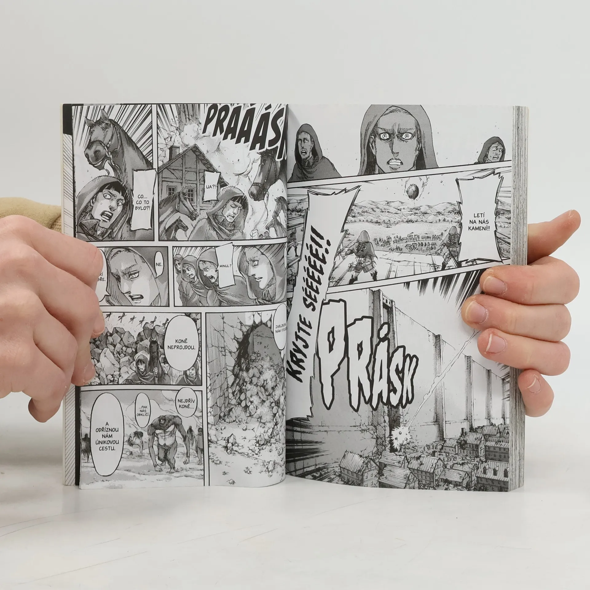 Dlouho očekávaný okamžik je konečně tu – Průzkumníci se vydávají dobýt zpět Zeď Maria. Úspěch celé akce však nezávisí jen na tom, zda se Erenovi povede ucpat díru ve zdi a proniknout do sklepení rodného domu, ale také na tom, zda se Průzkumníkům podaří vyzrát na Reinera a Bertolta, kteří už příchod svých bývalých spolubojovníků napjatě očekávají...
