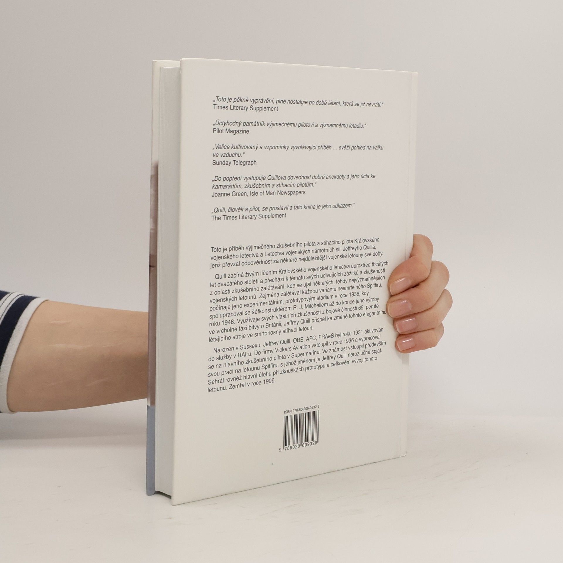 Kniha seznamuje českého čtenáře s příběhem zkušebního a stíhacího pilota Královského vojenského letectva a Letectva vojenských námořních sil, Jeffreyho Quilla. Quill začíná živým líčením Královského vojenského letectva uprostřed třicátých let dvacátého století, poté přechází k líčení vlastních zážitků a zkušeností z oblasti zkušebního zalétávání. Zejména zalétával každou variantu nesmrtelného Spitfiru, počínaje jeho experimentálním, prototypovým stadiem v roce 1936, kdy spolupracoval se šéfkonstruktérem R. J. Mitchellem až do konce jeho výroby roku 1948. Využívaje vlastních zkušeností z bojové činnosti 65. perutě ve vrcholné fázi bitvy o Británii, Jeffrey Quill přispěl ke změně tohoto elegantního létajícího stroje ve smrtonosný stíhací letoun. Z anglického originálu SPITFIRE A Test Pilot´s Story přeložil PhDr. Jiří Voňka. Jazyková korektura PaedDr. Libor Hlaváček, Ph.D.