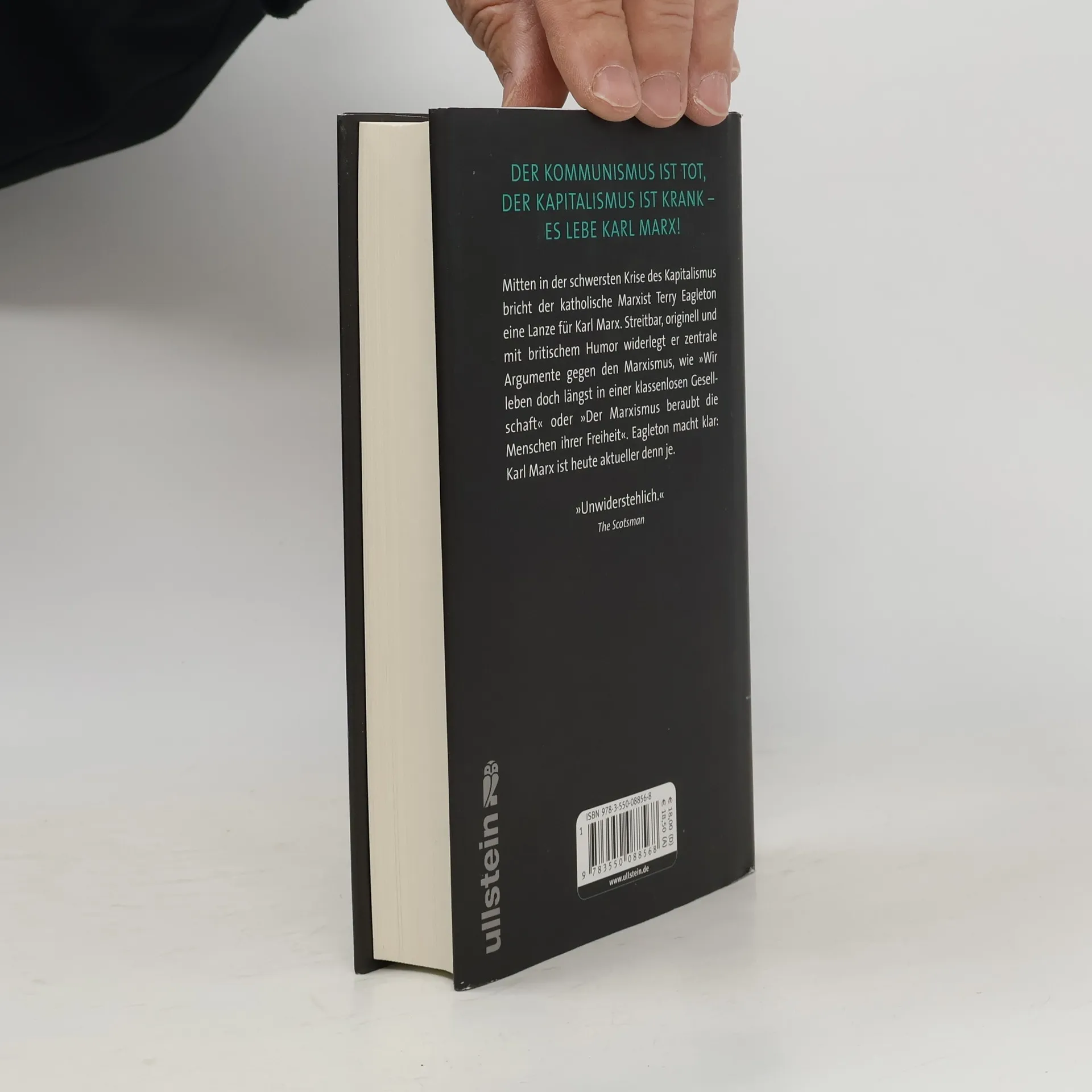 Mitten in der schwersten Krise des Kapitalismus bricht der katholische Marxist Terry Eagleton eine Lanze für Karl Marx. Streitbar, originell und mit britischem Humor widerlegt er zentrale Argumente gegen den Marxismus, wie z. B. „Wir leben doch längst in einer klassenlosen Gesellschaft“, „Der Marxismus erfordert einen despotischen Staat“ oder „Der Marxismus ignoriert die selbstsüchtige Natur des Menschen“. Eagleton macht klar: Marx’ materialistische Philosophie hat ihren Ursprung im Streben nach Freiheit, Bürgerrechten und Wohlstand. Sie zielt auf eine demokratische Ordnung und nicht auf deren Abschaffung