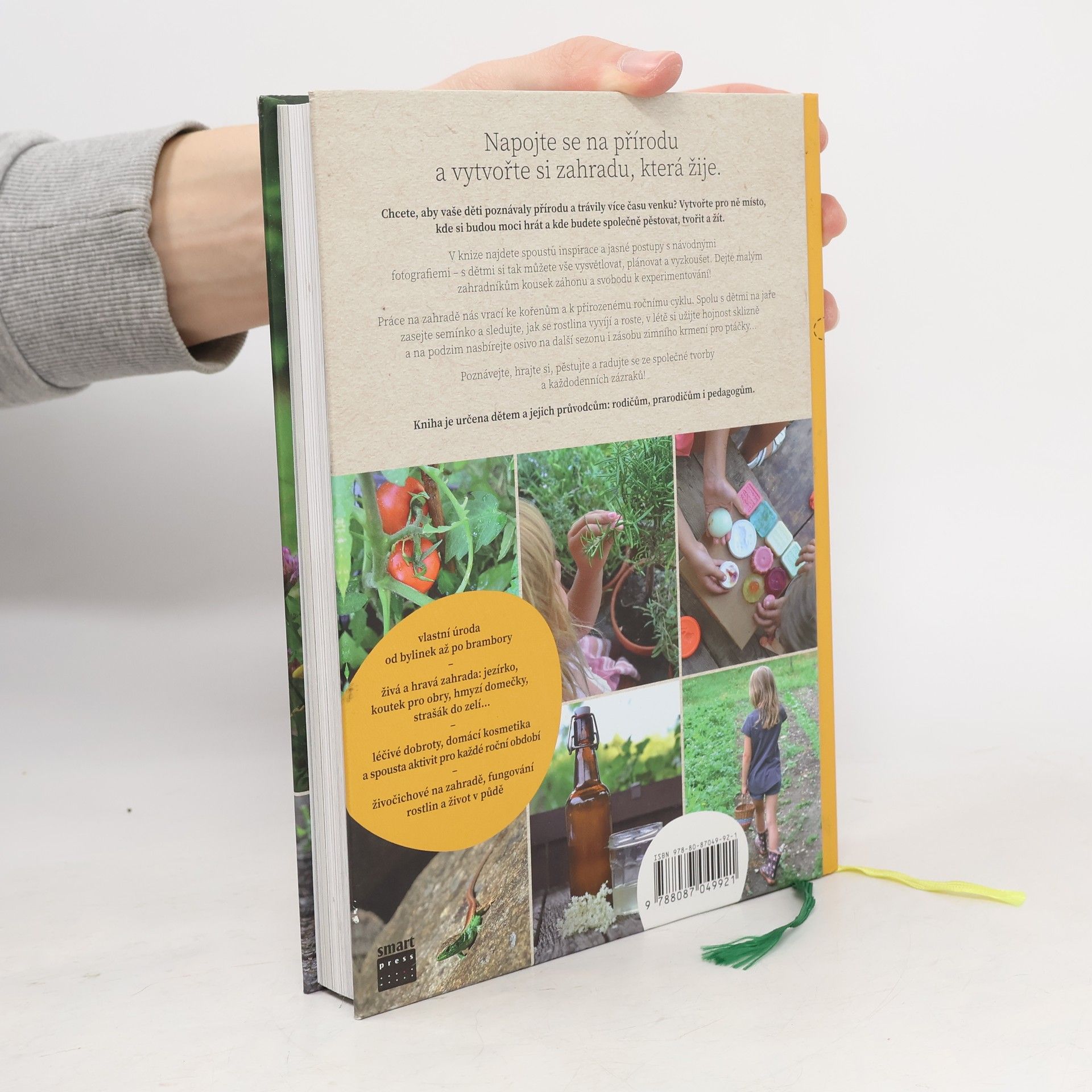 Kniha ukazuje, proč je zahrada úžasným místem k hraní a objevování s dětmi a rodinou. Obsahuje krásné fotografie z pestrého roku na zahradě, návodné postupy a ilustrace. Srozumitelně a zábavně vysvětluje principy úspěšného zahradničení, poskytuje kalendářní přehled pro celý rok a slouží jako praktický manuál pro jakoukoli zahradu. Zaměřuje se na zapojení dětí do dění, vtahuje je i jejich průvodce do pozorování přírodních krás a jevů. Nabízí inspiraci pro tvořivé a příjemné hraní v jakékoli sezóně, často spojené s opravdovým pěstováním, které baví dospělé i děti a umožňuje společně vypěstovat vlastní úrodu. Celoroční životní cyklus zahrady se prolíná s konkrétními aktivitami vhodnými pro děti formou originálních, ale snadno zvládnutelných projektů. Čtenář se dozví zajímavé detaily o životě zvířat a fungování rostlin, a seznámí se s tradičními rituály, které lze zapojit do moderního rodinného života. Autorka, zkušená v zahradničení a publikování, vysvětluje odborné souvislosti jasnou a poutavou formou a poskytuje praktické rady, jak zajistit, aby byla zahrada pro děti nejen podnětná, ale také bezpečná.