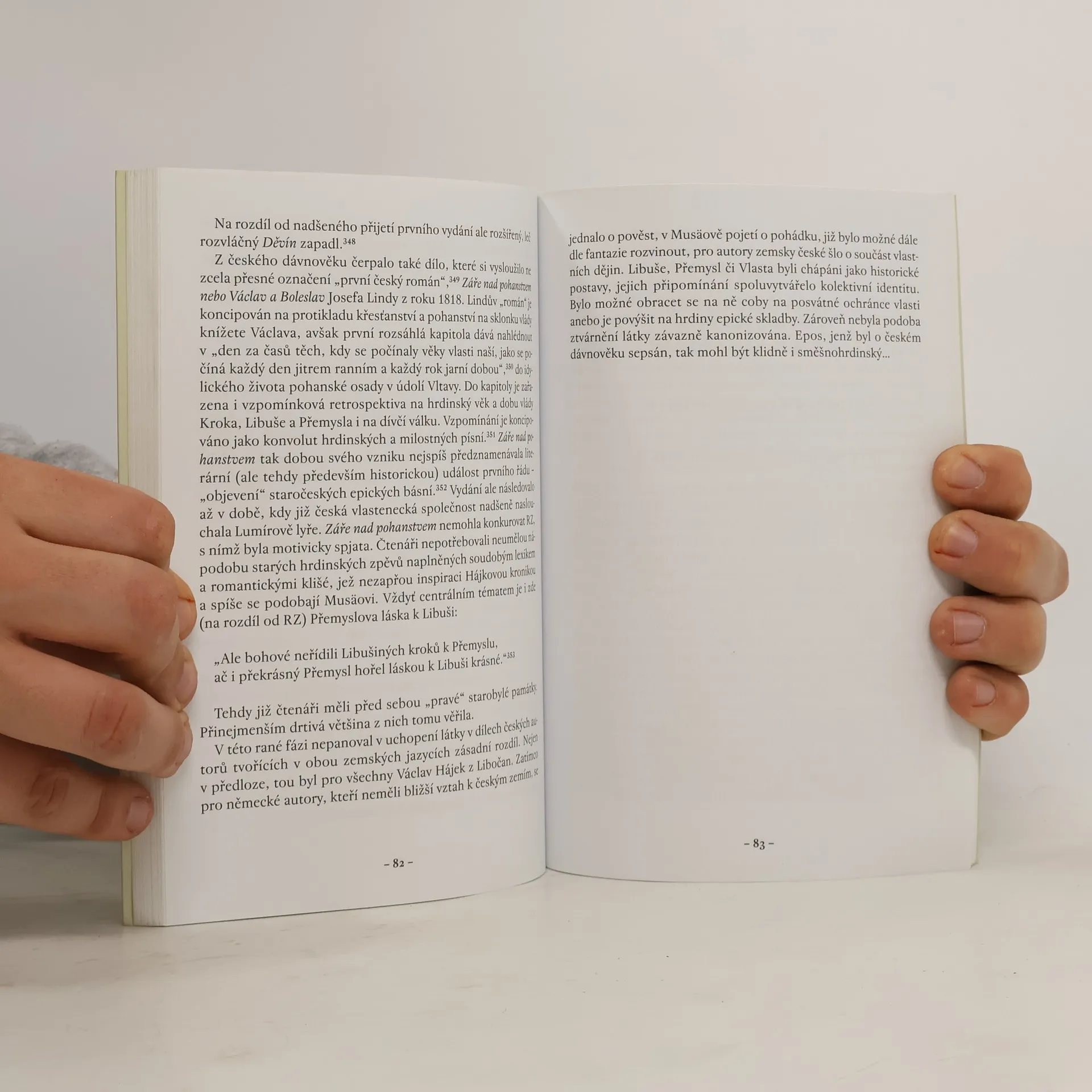 Literárně-historická studie se zabývá obrazem příběhů z českého dávnověku, a to v literatuře české, českoněmecké a německé. Soustřeďuje se na postihnutí vývojových tendencí pověstí o počátcích české země v beletrii i historiografické literatuře 19. století. Pozornost je věnována zejména německojazyčnému zpracování látky pověsti o Libuši s přesahy k dívčí válce. Práce představuje ojedinělou mezioborovou sondu do specifické problematiky budování národního mýtu a s tím spojené národní identity.