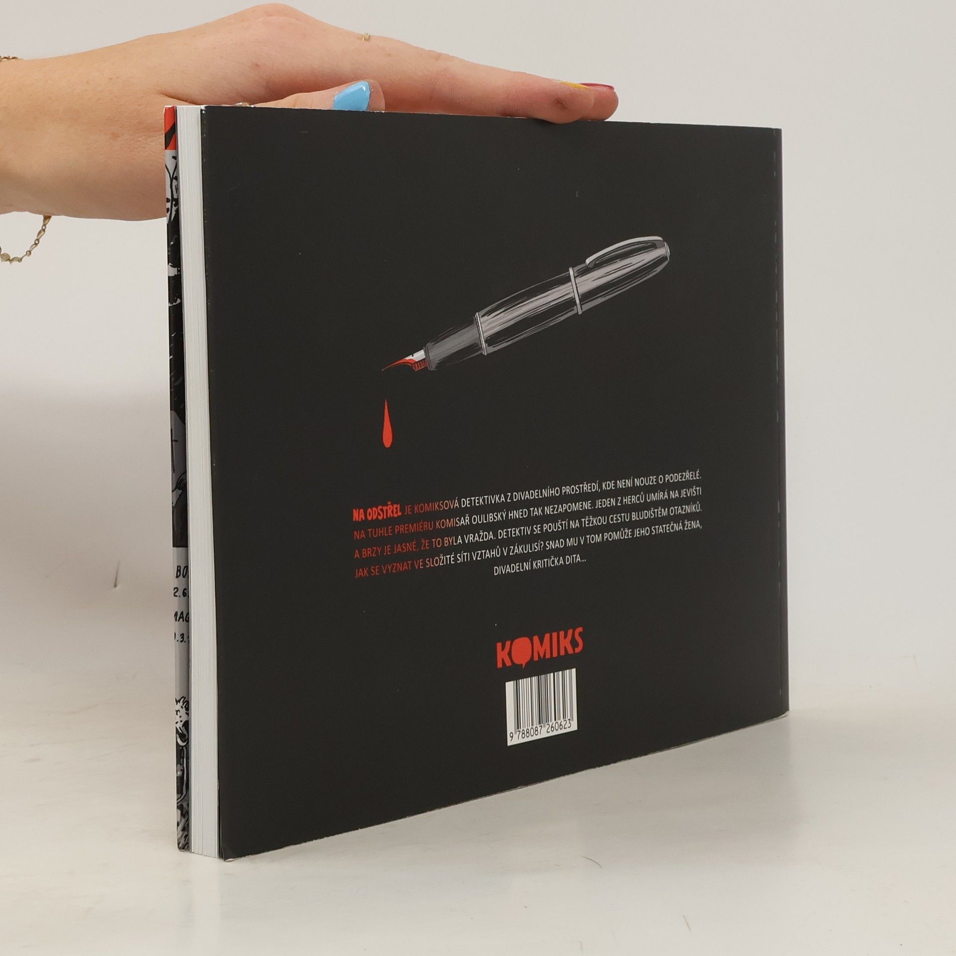Komiksová detektivka z divadelního prostředí, kde není nouze o podezřelé. Na tuhle premiéru komisař Oulibský hned tak nezapomene. Jeden z herců umírá na jevišti a brzy je jasné, že to byla vražda. Detektiv se pouští na těžkou cestu bludištěm otazníků. Jak se vyznat ve složité síti vztahů v zákulisí? Snad mu v tom pomůže jeho statečná žena, divadelní kritička Dita…