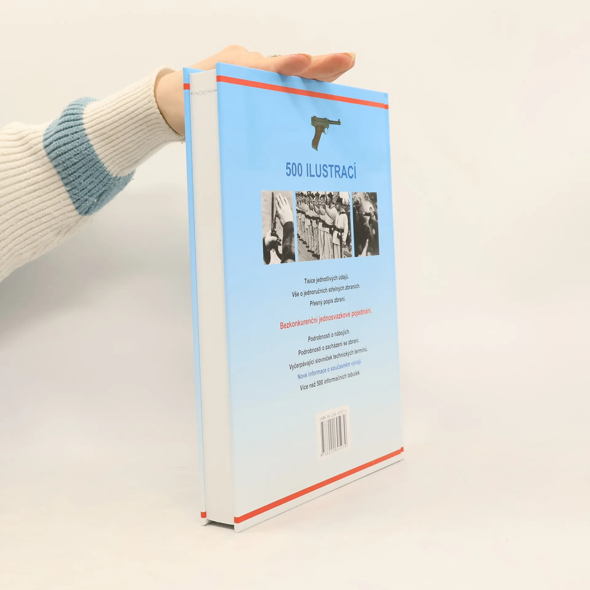 Informace jsou zde předkládány v úpravě, v níž se slučuje jasnost a přehlednost se snadnou orientací. Kniha je považována za nejnadějnější pokus, jaký byl kdy učiněn v podrobné analýze sta let světové výroby zbraní. Vše o jednručních střelných zbraních. Tisíce jednotlivých údajů. Přes 500 ilustrací. Přesný popis zbraní. Přes 500 informačních tabulek. Podrobnost o nábojích. Podrobnosti o zacházení se zbraní. Slovníček technických termínů. Informace o současném vývoji.