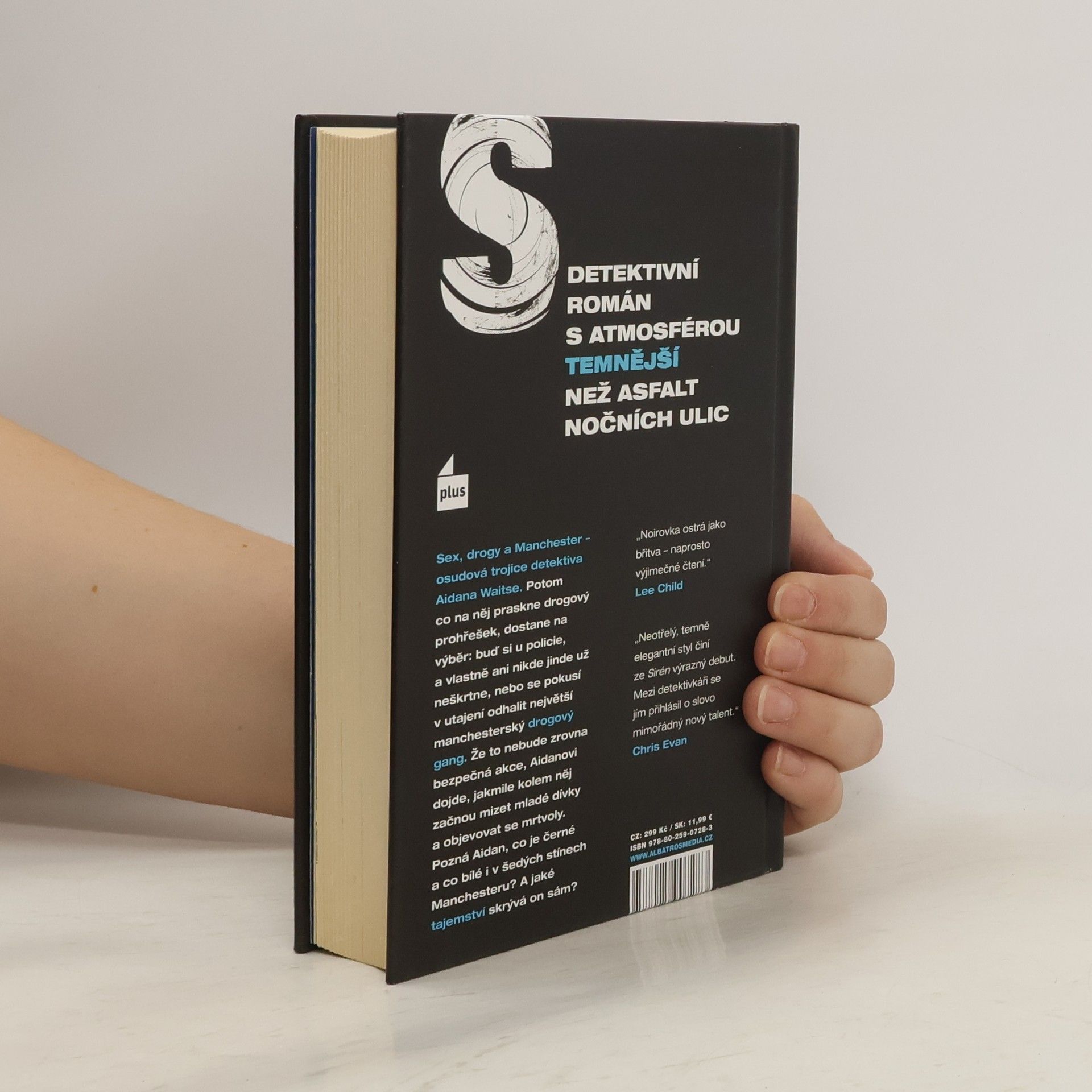 "Noirovka ostrá jako břitva – naprosto výjimečné čtení Sex, drogy a Manchester – osudná trojice detektiva Aidana Waitse. Potom co na něj praskne drogový prohřešek, dostane na výběr: buď si u policie, a vlastně ani nikde jinde už neškrtne, nebo se pokusí v utajení odhalit největší manchesterský drogový gang. Že to nebude zrovna bezpečná akce, Aidanovi dojde, jakmile kolem něj začnou mizet mladé dívky a objevovat se mrtvoly. Pozná Aidan, co je černé a co bílé i v šedých stínech Manchesteru? A jaké tajemství skrývá on sám?