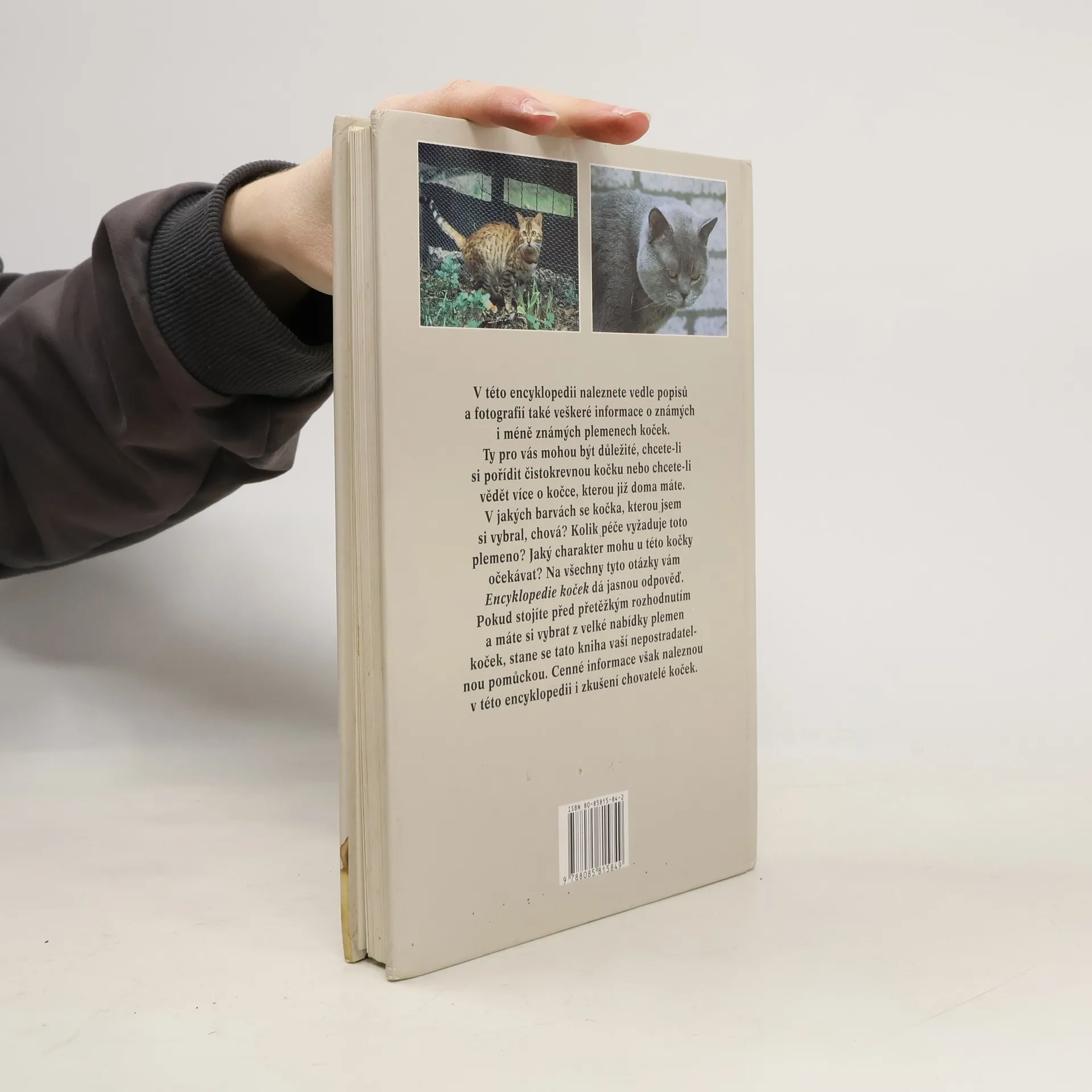 Při výběru čistokrevné kočky je většinou rozhodujícím faktorem její vzhled. Proti tomu nelze nic namítat, pokud ovšem člověk počítá také s charakterem zvířete a s tím, kolik péče a pozornosti mu bude muset věnovat. Vedle řady popisů a fotografií známých i méně známých plemen koček naleznete v této encyklopedii veškeré informace, které pro vás mohou být důležité, pokud si chcete pořídit čistokrevnou kočku, která by se k vám hodila. V encyklopedii jsou uvedena také zajímavá nová plemena, která ještě nejsou uznána všemi chovatelskými organizacemi, jako je například česká kadeřavá kočka Bohemia rex. Pokud stojíte před přetěžkým rozhodnutím a máte si vybrat z velké nabídky plemen koček, stane se tato kniha vaší nepostradatelnou pomůckou. Cenné informace však naleznou v této encyklopedii i zkušení chovatelé koček. Na titulní stránce je překlep ve jméně autorky.