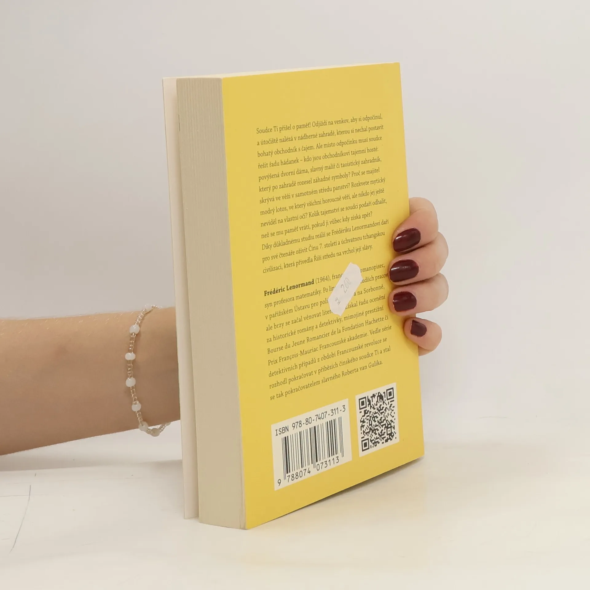 Soudce Ti přišel o paměť! Odjíždí na venkov za větším klidem a útočiště nalézá v nádherné zahradě, kterou si nechal postavit bohatý obchodník s čajem. Během odpočinku se ale před soudcem vyjeví řada záhad – kdo jsou obchodníkovi tajemní hosté: namyšlená dvořanka, slavný básník či taoistický zahradník, který zahradu zaplnil záhadnými symboly? Proč se majitel skrývá ve věži postavené v samotném středu panství? Podaří se jim spatřit bájný modrý lotos, ve který všichni bezmezně věří, ale nikdo jej ještě neviděl na vlastní oči? Kolik tajemství se soudci podaří odhalit, než se mu paměť vrátí, pokud vůbec? Díky důkladnému studiu reálií se Frédériku Lenormandovi daří pro své čtenáře oživit Čínu 7. století a úchvatnou tchangskou civilizaci, která přivedla Říši středu na vrchol její slávy.