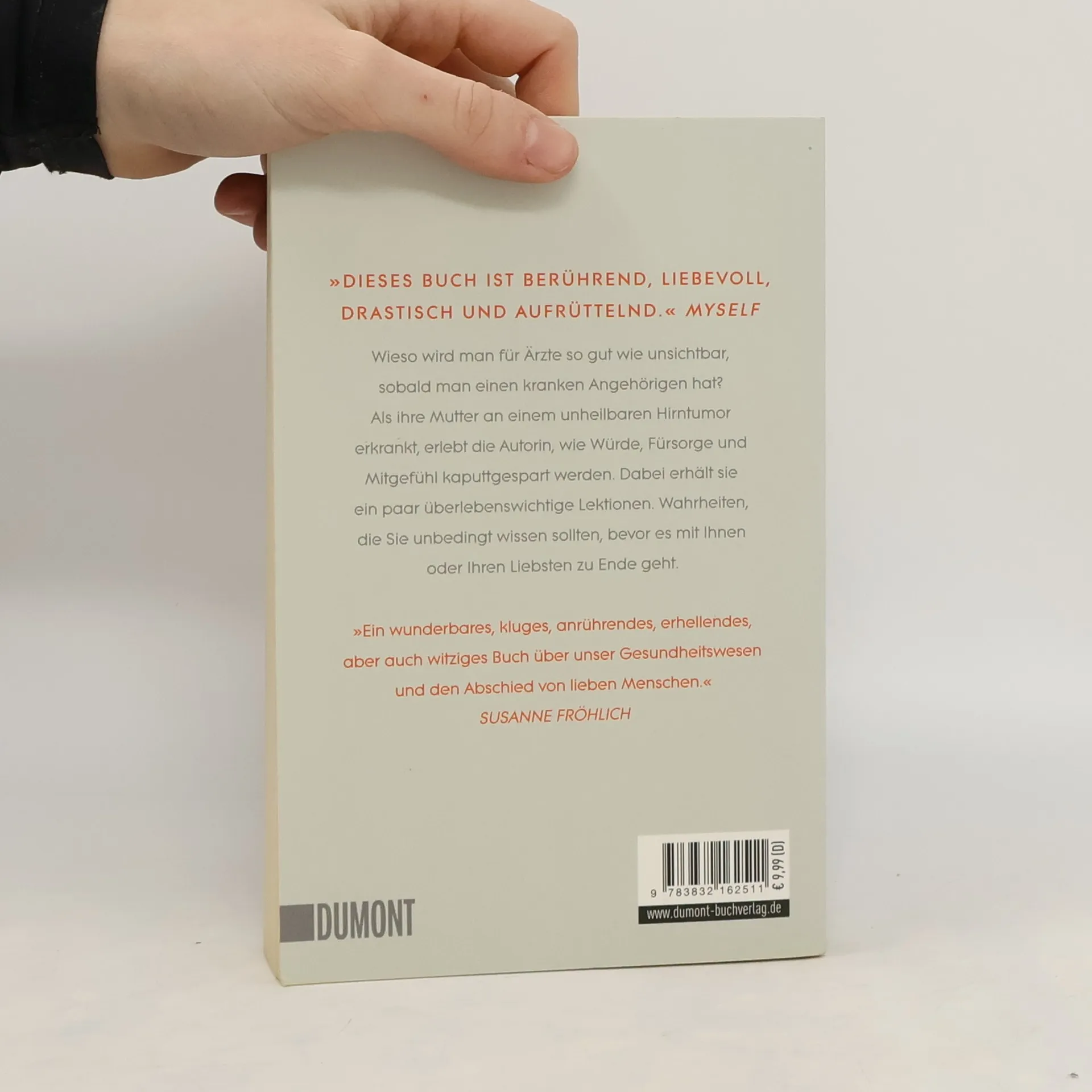 Wieso wird man für Ärzte praktisch unsichtbar, sobald man einen kranken Angehörigen hat? Wie kommt das Stockholm-Syndrom auf die Intensivstation? Und weshalb braucht man für die Beschaffung von Pflege, die den Namen verdient, ähnlich viel kriminelle Energie wie für den Kauf einer ordentlichen Portion Heroin? Als ihre Mutter an einem unheilbaren Hirntumor erkrankt, muss sich die Autorin nicht nur mit der Aussicht auf einen endgültigen Abschied auseinandersetzen; sie erlebt im Backstagebereich unseres Gesundheitswesens obendrein, wie Würde, Fürsorge, Mitgefühl und Interesse systematisch kaputtgespart werden. Dabei erhält sie ein paar überlebenswichtige Lektionen. Dinge, die Sie unbedingt wissen sollten, bevor es mit Ihnen oder Ihren Liebsten zu Ende geht. Schließlich stirbt man nur einmal … »Glauben Sie mir kein Wort – ich bin eine Angehörige!«