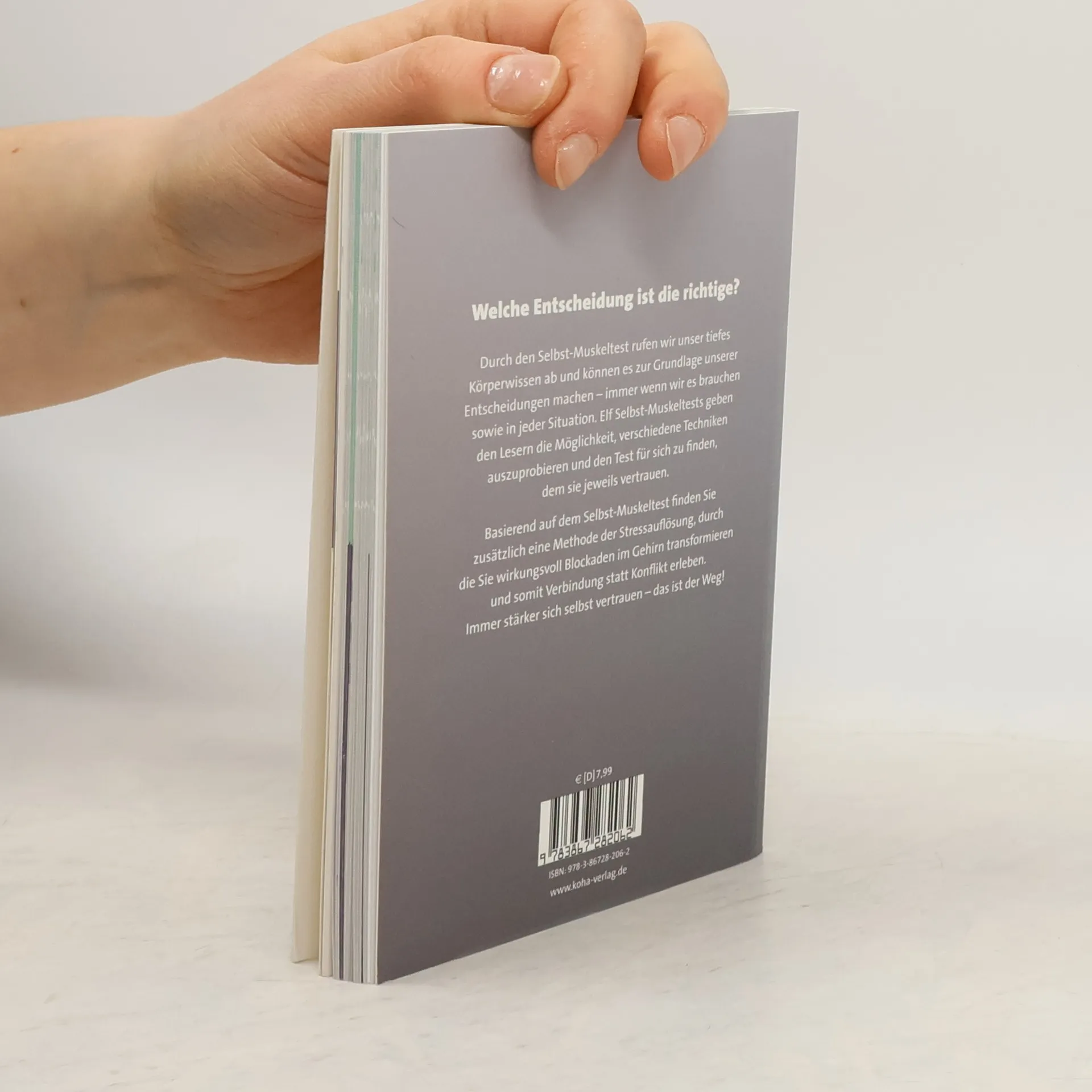 Welche Entscheidung ist die richtige? Durch den Selbst-Muskeltest rufen wir unser tiefes Körperwissen ab und können es zur Grundlage unserer Entscheidungen machen – immer wenn wir es brauchen sowie in jeder Situation. Elf Selbst-Muskeltests geben den Lesern die Möglichkeit, verschiedene Techniken auszuprobieren und den Test für sich zu finden, dem sie jeweils vertrauen. Basierend auf dem Selbst-Muskeltest finden Sie zusätzlich eine Methode der Stressauflösung, durch die Sie wirkungsvoll Blockaden im Gehirn transformieren und somit Verbindung statt Konflikt erleben. Immer stärker sich selbst vertrauen – das ist der Weg!