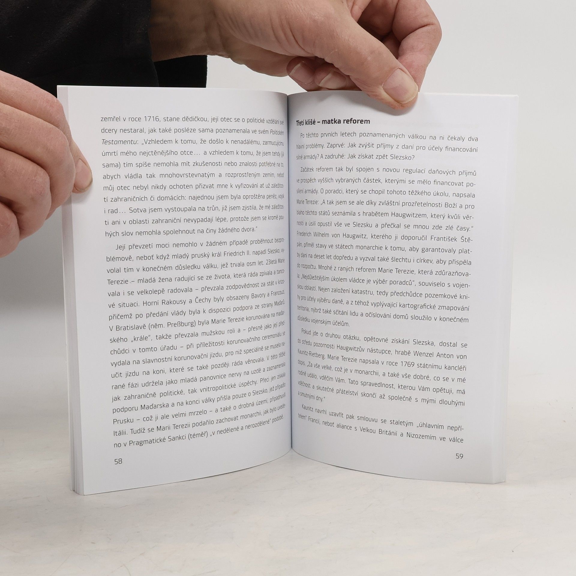 Tři sta let od narození Marie Terezie je výročím, které by rozhodně nemělo zapadnout. Když Marie Terezie nastupovala k moci, stala se sice panovnicí obrovské říše, která však připomínala spíše kolos na hliněných nohou. Monarchie nebyla vnitřně jednotná a státní pokladna byla prázdná. Marie Terezie proto musela prosadit finanční a správní reformy, které by připravily cestu modernizaci země. Institut Václava Klause na ni vzpomíná novým sborníkem. Do sborníku přispěli Jiří Weigl, Jan Sechter, Ferdinand Trauttsmannsdorff, Jaroslav Čechura, Jindřich Forejt, Karl Vocelka, Vladimír Liška, Milan Hlavačka, Eduard Maur, Josef Pekař, Václav Junek a Michal Skořepa. V příloze Pragmatická sankce z 19. dubna 1713, patent Marie Terezie o všeobecném školním řádu a robotní patent. Nechybí ani reprodukce barevných obrazů Marie Terezie. Editorem je Marek Loužek.