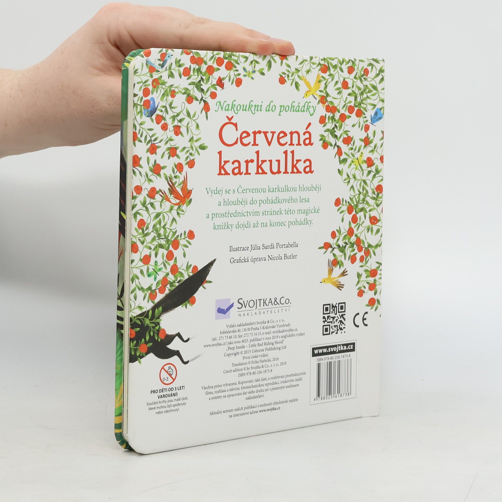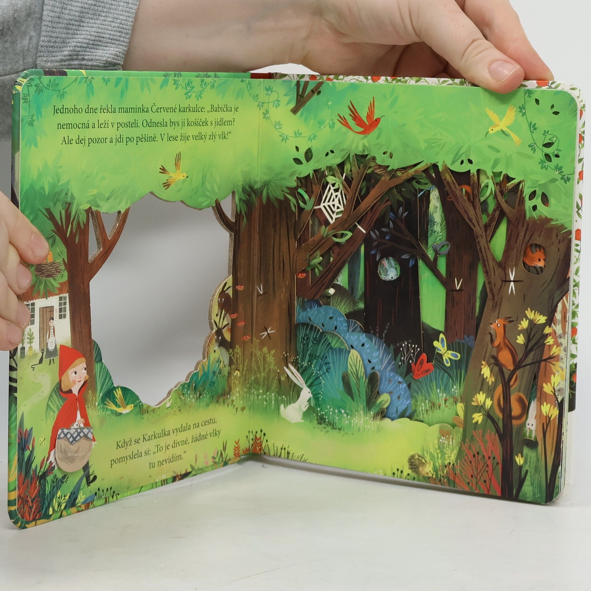 V této půvabně ilustrované knížce najdete klasickou a dětmi oblíbenou pohádku o Červené karkulce. Vyprávění o děvčátku, které se vydalo cestou necestou lesem za babičkou, vám zpestří mnoho otevíracích okének a průhledů v jednotlivých stránkách, které jitří dětskou fantazii tak, že se nemohou dočkat, až otočíte na další stránku. Kdopak to vykukuje z dutiny stromu? Kdo se ukrývá za keřem? Kdo bydlí v domečku uprostřed černého lesa? Co to má vlk v břiše? Vydejte se s Červenou karkulkou do lesa, nakoukněte do pohádky a postupně otevírejte všechna okénka. Jak to všechno dopadne? To se dozvíte na konci pohádky.