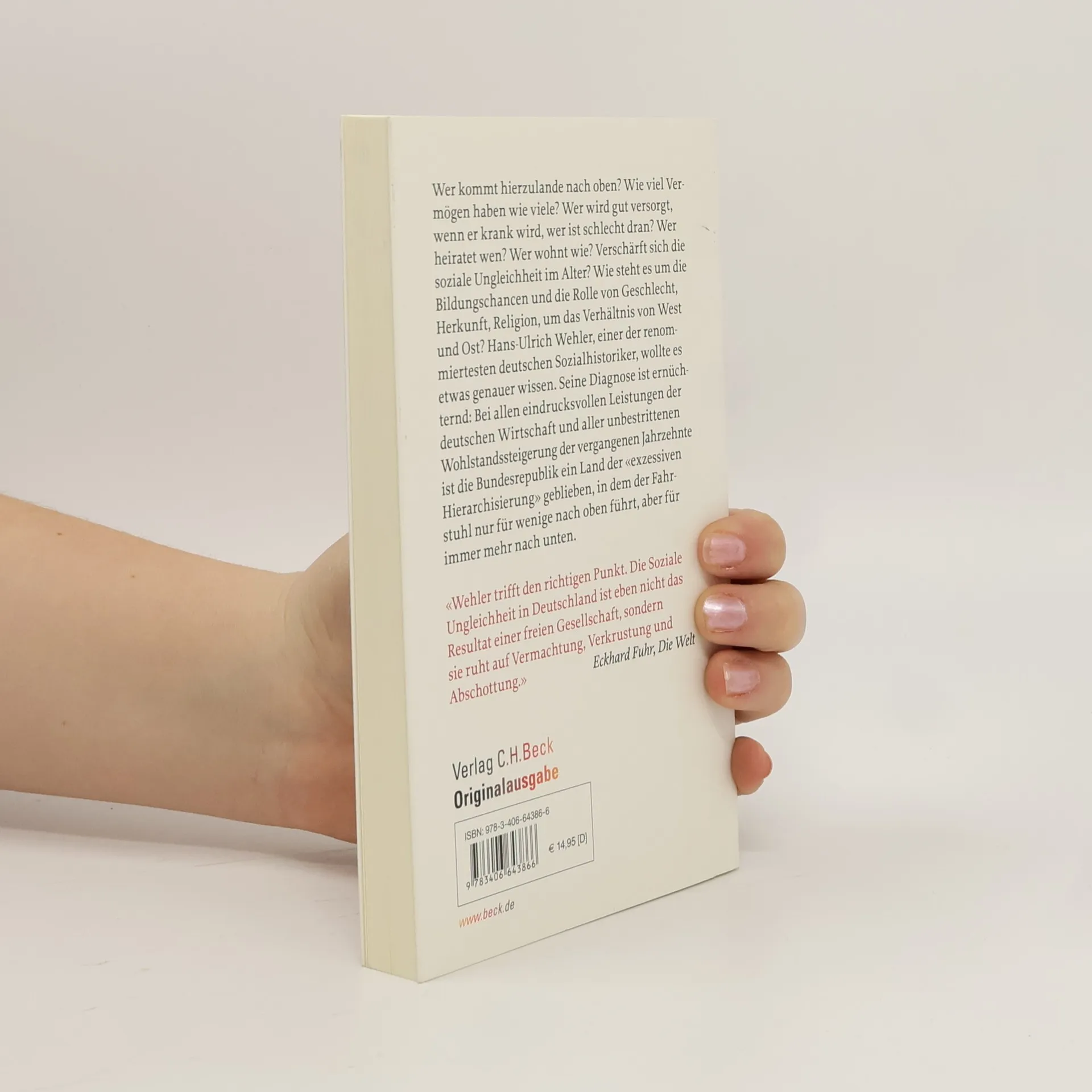 Schwindelerregende Managergehälter am einen Ende der sozialen Stufenleiter – wachsende Kinderarmut und Hartz-IV-Tristesse am anderen. Die Schere öffnet sich, soviel ist klar. Hans-Ulrich Wehler, einer der renommiertesten deutschen Sozialhistoriker, wollte es etwas genauer wissen: Wer kommt hierzulande nach oben, wer bleibt in der Regel stecken? Wie viel Vermögen haben wie viele? Wer wird gut versorgt, wenn er krank wird, wer ist schlecht dran? Wer heiratet wen? Wer wohnt wie? Verschärft sich die soziale Ungleichheit im Alter? Wie steht es um die Bildungschancen und die Rolle von Geschlecht, Herkunft, Religion, um das Verhältnis von West und Ost? Die Diagnose ist ernüchternd und nicht selten bedrückend: Bei allen eindrucksvollen Leistungen der deutschen Wirtschaft und aller unbestrittenen Wohlstandssteigerung der vergangenen Jahrzehnte ist die Bundesrepublik ein Land der „exzessiven Hierarchisierung“ geblieben, in dem der Fahrstuhl nur für wenige nach oben führt, aber für immer mehr nach unten.