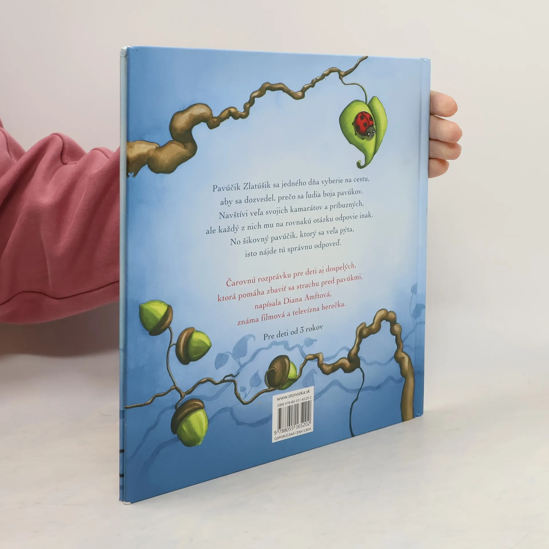 Pavúčik Zlatúšik sa jedného dňa vyberie na cestu, aby sa dozvedel, prečo sa ľudia boja pavúkov. Navštívi veľa svojich kamarátov a príbuzných, ale každý z nich mu na rovnakú otázku odpovie inak. No šikovný pavúčik, ktorý sa veľa pýta, isto nájde tú správnu odpoveď. Čarovnú rozprávku pre deti aj dospelých, ktorá pomáha zbaviť sa strachu pred pavúkmi, napísala Diana Amftová, známa filmová a televízna herečka.