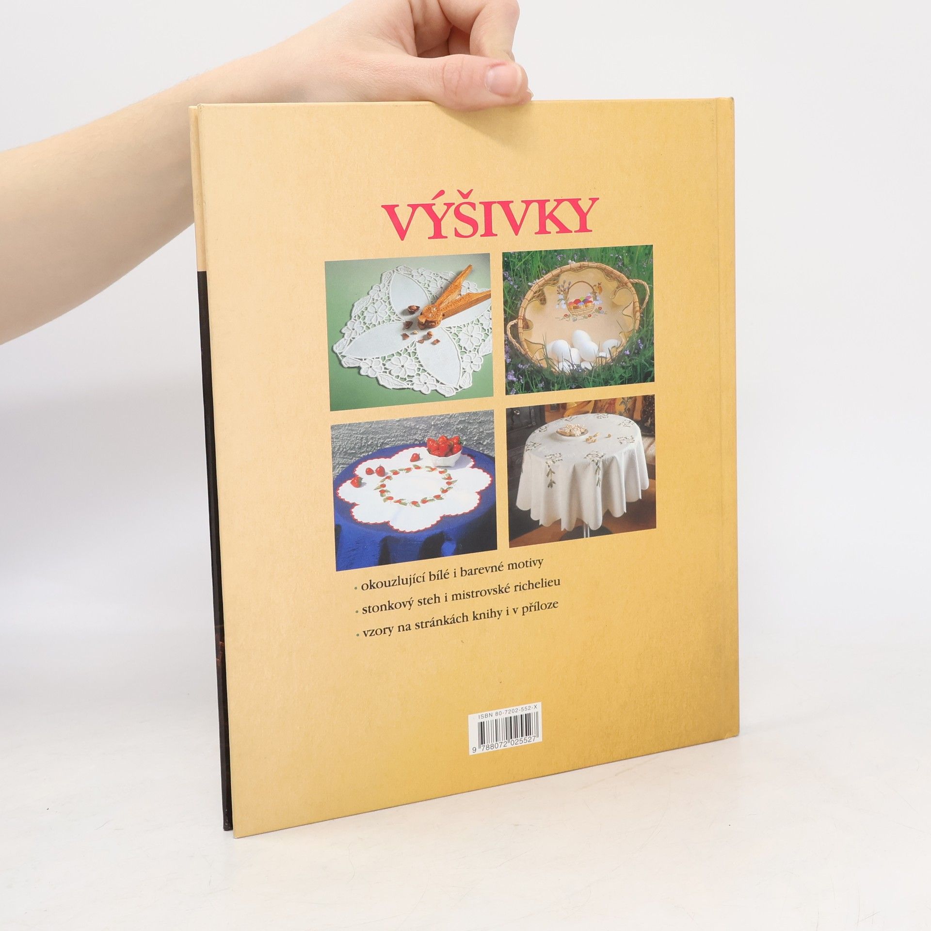 Kdo tvrdí, že výšivka vyšla z módy? Že už se neuplatní? Jiný názor dostanete, když se seznámíte s touto praktickou knihou. Zjistíte, že výšivka může dodat na půvabu a originalitě jako nic jiného. Seznámíte se s předkreslenými vzory, podle nichž lze pracovat krok za krokem, budete si moci vybrat nejrůznější okouzlující bílé i barevné motivy, naučíte se stonkový steh či mistrovské richelieu. Vzory najdete na stránkách knihy i v příloze.