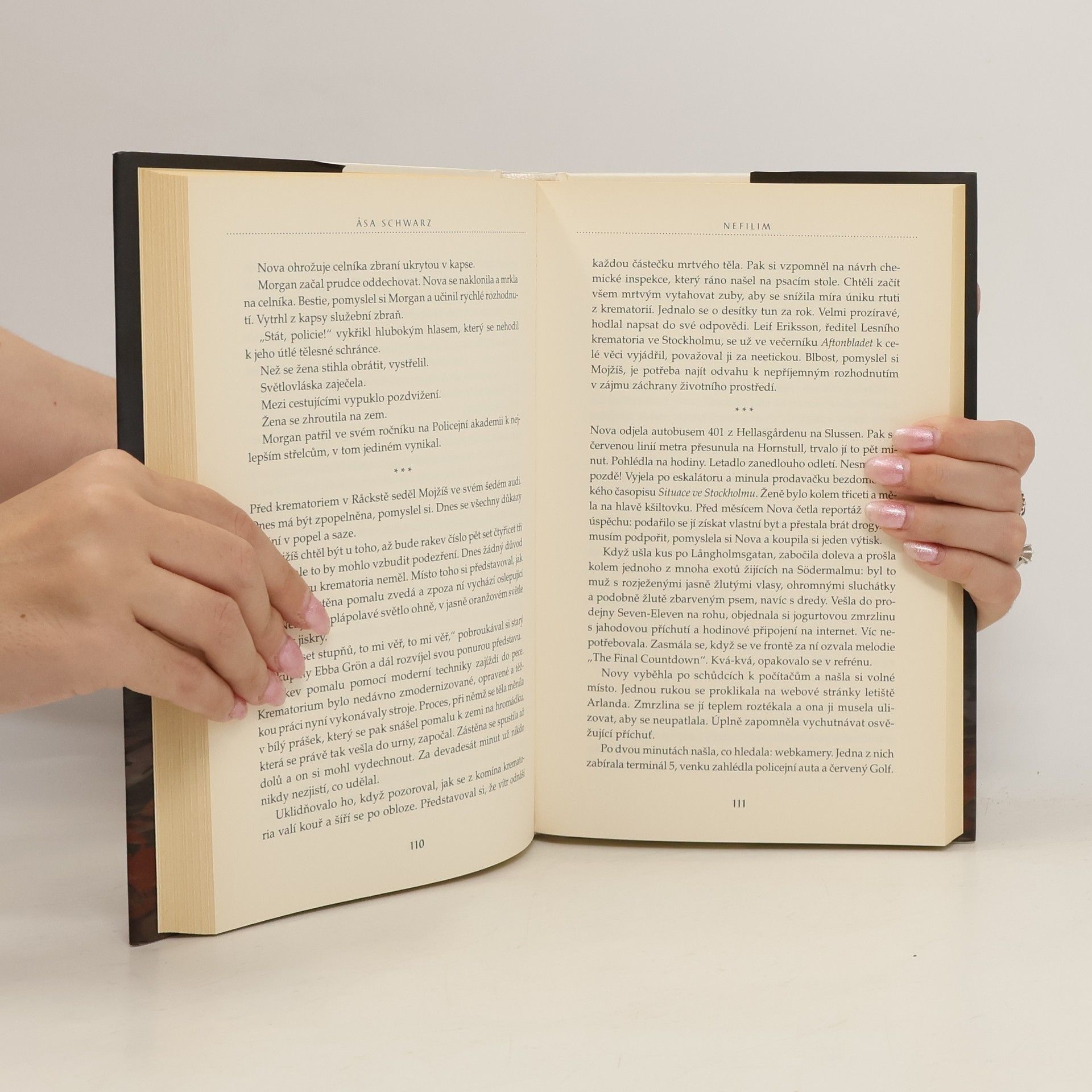 Napínavý román švédské autorky, s originální zápletkou a dramatickými zvraty, se odehrává v současném Stockholmu a vypráví příběh Nory Barakelové, mladé aktivistky hnutí Greenpeace. Tato přitažlivá, moderní hrdinka vystupuje spolu se svými nejbližšími přáteli proti těm, kteří nejvíce přispívají ke klimatickým změnám. Po náhlé smrti své matky je podezřelá z mnoha podivných vražd, a proto prchá před policií. Souběžně pátrá po nadaci FON, což jsou lidé odvozující svůj původ od biblických „nefilim“ a bojující i za cenu vraždění proti globálnímu oteplování. Zápletka románu je originální a autorka dramaticky kombinuje dávné biblické události se současností.