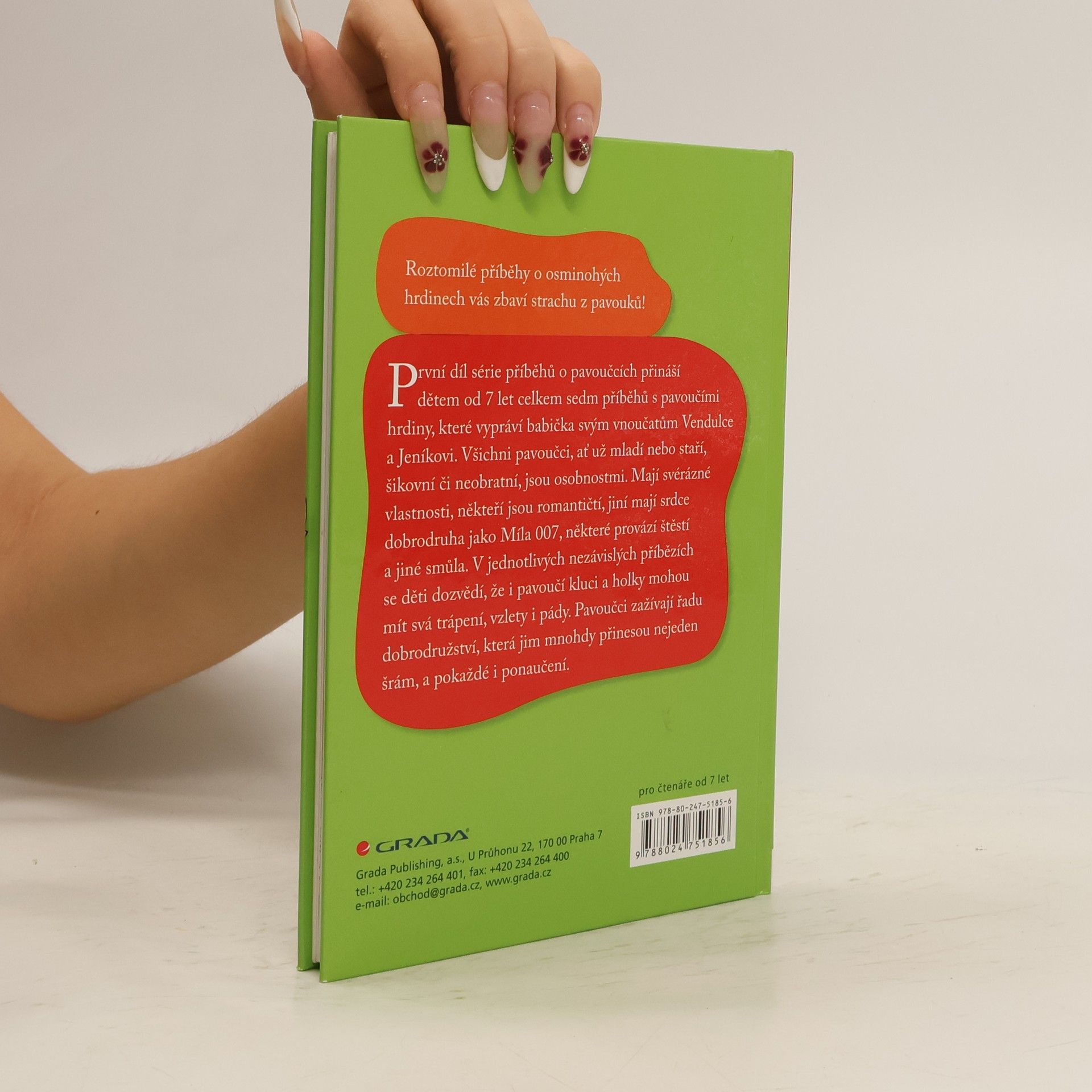 Roztomilé příběhy o osminohých hrdinech vás zbaví strachu z pavouků! První díl série příběhů o pavoučcích přináší dětem od 7 let celkem sedm příběhů s pavoučími hrdiny, které vypráví babička svým vnoučatům Vendulce a Jeníkovi. Všichni pavoučci, ať už mladí nebo staří, šikovní či neobratní, jsou osobnostmi. Mají svérázné vlastnosti, někteří jsou romantičtí, jiní mají srdce dobrodruha jako Míla 007, některé provází štěstí a jiné smůla. V jednotlivých nezávislých příbězích ukážou dětem, že i pavoučí kluci a holky mohou mít svá trápení, vzlety i pády. Zažívají řadu dobrodružství, která jim mnohdy přinesou nejeden šrám, ale i ponaučení.