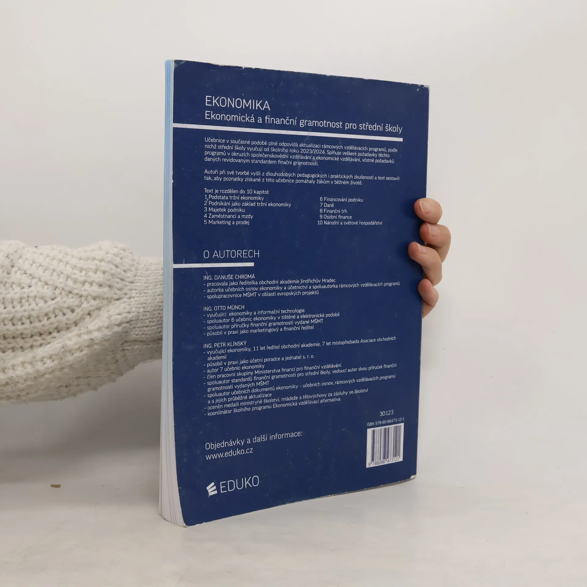Učebnice shrnuje vše, co požaduje RVP, standard finanční gramotnosti a maturitní katalog Občanského základu v jedné publikaci. Je určena pro střední školy, které nemají ekonomické zaměření - tedy odborné školy a gymnázia. Autoři učebnice jsou také spoluautoři aktuálních vzdělávacích dokumentů, což zaručuje jejich vzájemný soulad. Učebnice je rozdělena do 10 kapitol (1 Podstata tržní ekonomiky, 2 Podnikání jako základ tržní ekonomiky, 3 Majetek podniku, 4 Zaměstnanci a mzdy, 5 Marketing a prodej, 6 Financování podniku, 7 Daně, 8 Finanční trh, 9 Osobní finance, 10 Národní a světové hospodářství ) Publikace je zároveň cvičebnicí (za každou kapitolou jsou zařazeny otázky a úkoly).