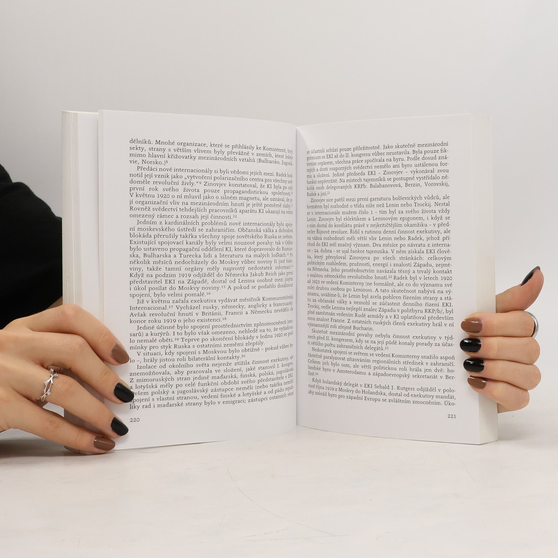 Kniha, která vychází s více jak dvacetiletým opožděním od svého napsání popisuje důvody vzniku a počáteční vývoj Komunistické internacionály v letech 1919-1922. Autoři popisují postupný vývoj ústředních orgánů Kominterny a vznik komunistických stran jednotlivých evropských zemí. Publikace, která obsahuje velké množství mikrobiografií čelných evropských i českých komunistů zároveň představuje i vůbec první kritický popis dějin vzniku KSČ