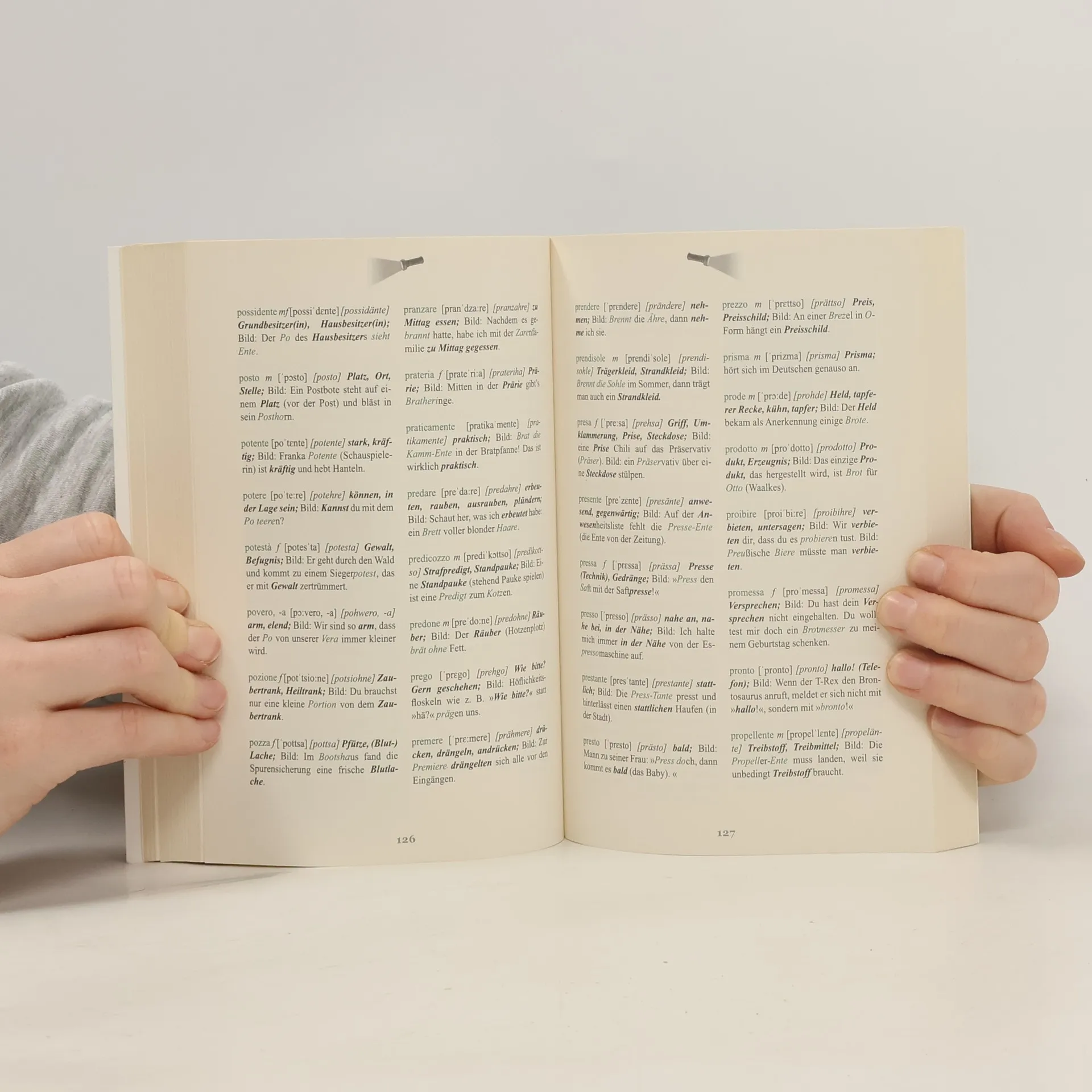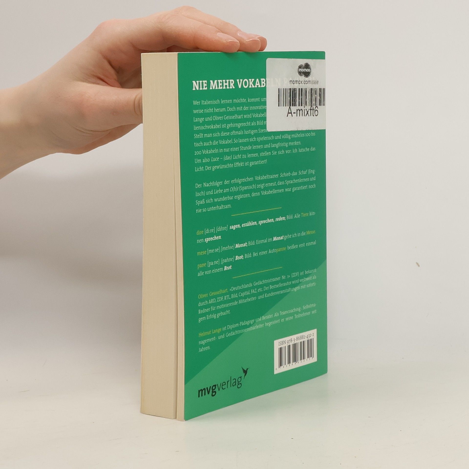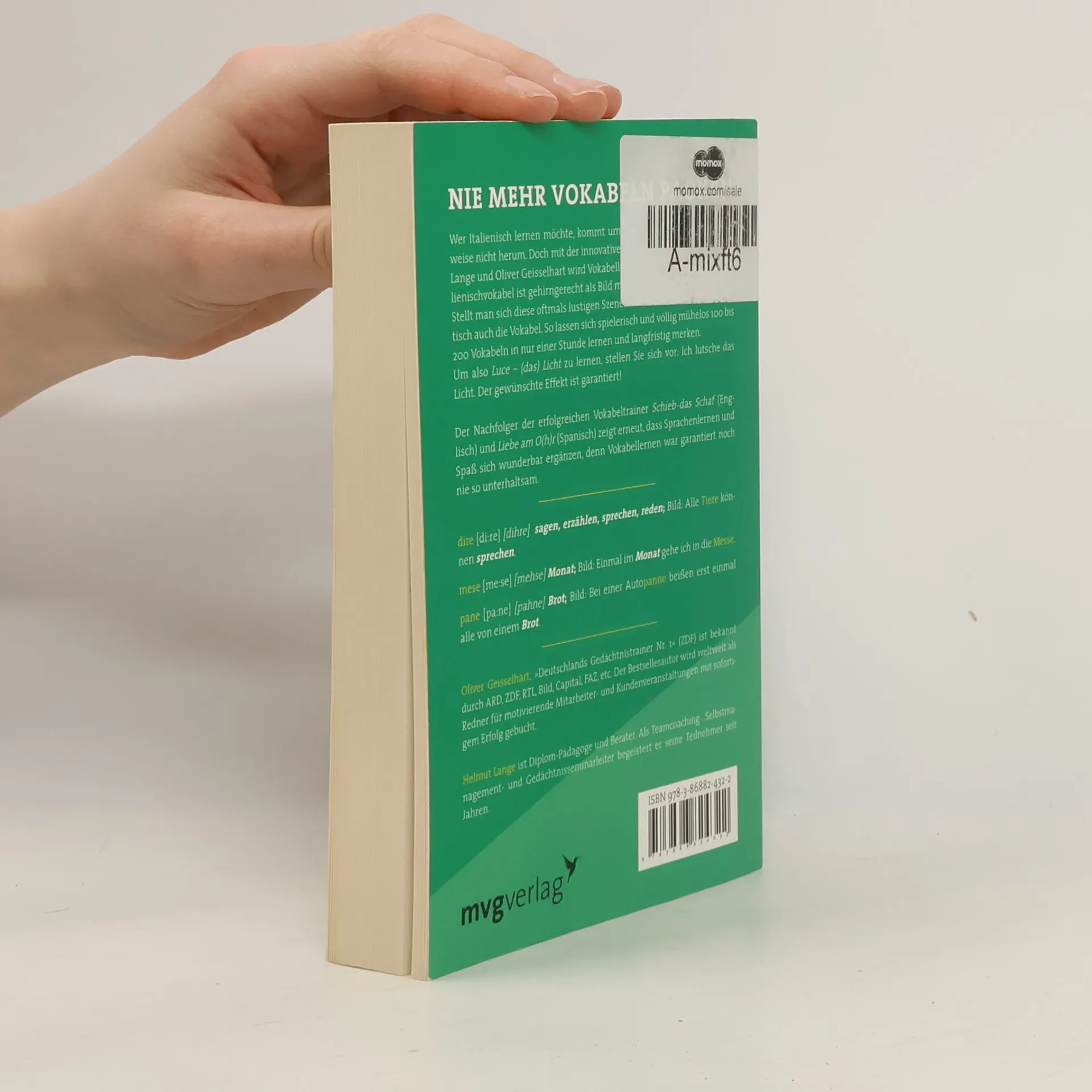 Wer Italienisch lernen möchte, kommt um das Vokabelpauken normalerweise nicht herum. Doch mit der innovativen LaGeiss-Methode von Helmut Lange und Oliver Geisselhart wird Vokabellernen zum Vergnügen: Jede Italienischvokabel ist gehirngerecht als Bild mit ihrer Übersetzung verknüpft. Stellt man sich diese oftmals lustigen Szenen vor, merkt man sich automatisch auch die Vokabel. So lassen sich spielerisch und völlig mühelos 100 bis 200 Vokabeln in nur einer Stunde lernen und langfristig merken. Um also Luce – (das) Licht zu lernen, stellen Sie sich vor: Ich lutsche das Licht. Der gewünschte Effekt ist garantiert! Der Nachfolger der erfolgreichen Vokabeltrainer Schieb das Schaf (Englisch) und Liebe am O(h)r (Spanisch) zeigt erneut, dass Sprachenlernen und Spaß sich wunderbar ergänzen, denn Vokabellernen war garantiert noch nie so unterhaltsam.