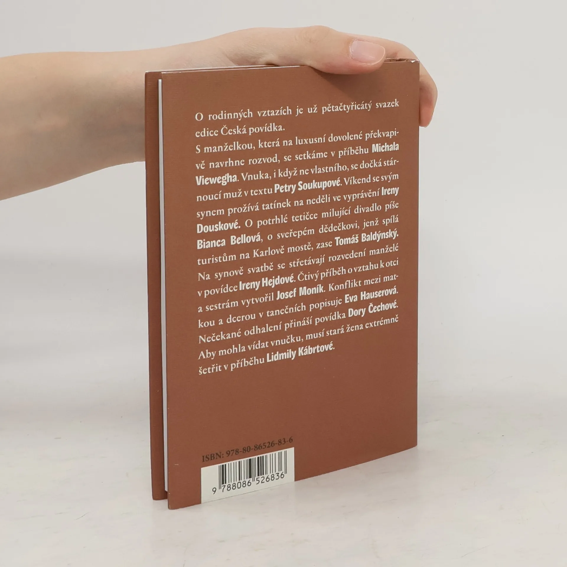Povídky o rodinných vztazích. Na luxusní dovolené překvapí manželka přáním rozvést se v povídce Michala Viewegha. Vnuka, i když ne vlastního, se dočká stárnoucí muž v příběhu Petry Soukupové. Víkend se svým synem prožívá tatínek na neděli v textu Ireny Douskové…