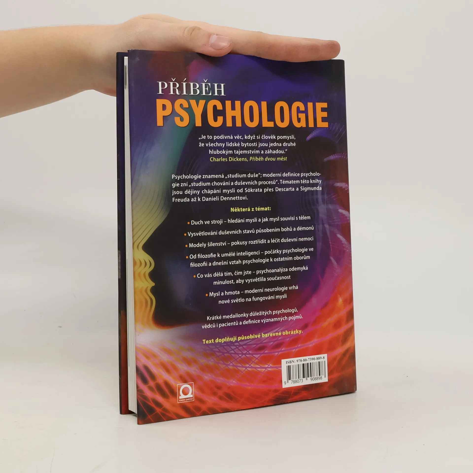 Od duchů k psychoterapii: naše mysl v průběhu věků Psychologie – zpočátku pouhé odvětví filozofie, nyní svébytná disciplína úzce propojená s neurologií a fyziologií. Kniha pojímá vývoj této vědní disciplíny v náboženském, filozofickém, antropologickém i lékařském kontextu. Předkládá medailonky význačných osobností, jakými byli John Locke, David Hume, Jean Piaget či Noam Chomsky, zkoumá vědomé, nevědomé a podvědomé modely Sigmunda Freuda i C.G.Junga, pojednává o využití psychologie v sociologii, právu a podnikání. Titul je doplněn více než 100 barevnými fotografiemi.