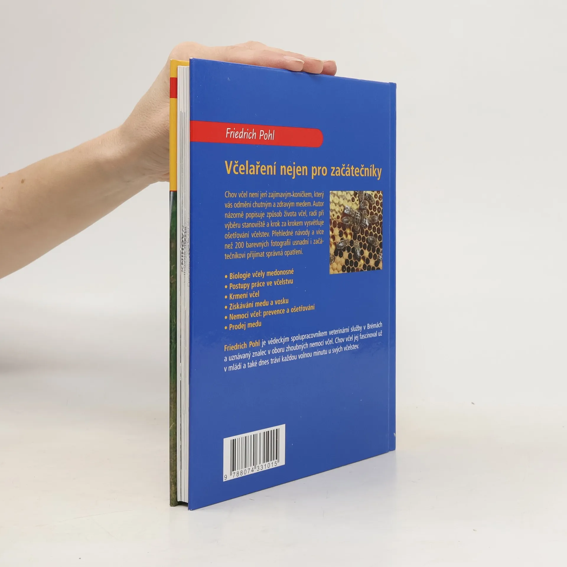 Chov včel není jen zajímavým koníčkem, který vás odmění chutným a zdravým medem. Autor názorně popisuje způsob života včel, radí při výběru stanoviště a krok za krokem vysvětluje ošetřování včelstev. Přehledné návody a více než 200 barevných fotografií usnadní i začátečníkovi přijímat správná opatření. - Biologie včely medonosné - Postupy práce ve včelstvu - Krmení včel - Získávání medu a vosku - Nemoci včel: prevence a ošetřování - Prodej medu Friedrich Pohl je vědeckým spolupracovníkem veterinární služby v Brémách a uznávaný znalec v oboru zhoubných nemocí včel. Chov včel jej fascinoval už v mládí a také dnes tráví každou volnou minutu u svých včelstev.