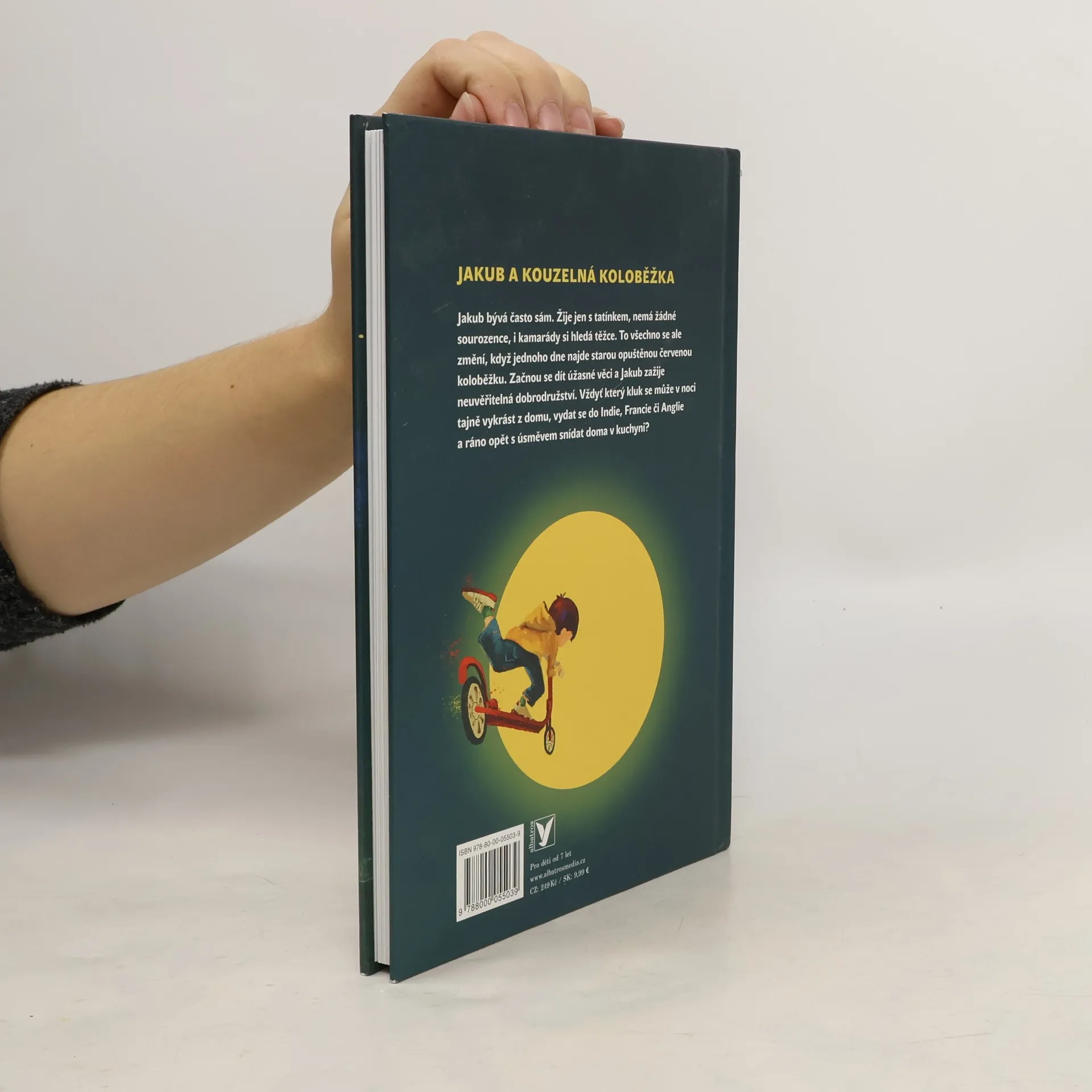 Jakub bývá často sám. Žije jen s tatínkem, nemá žádné sourozence, a i kamarády si hledá těžce. To všechno se ale změní, když jednoho dne najde starou opuštěnou červenou koloběžku. Vezme ji domů, opraví ji a světe div se! Koloběžka k němu promluví. A nejen to! Začnou se dít úžasné věci a Jakub zažije neuvěřitelná dobrodružství. Vždyť který kluk se může v noci tajně vykrást z domu, vydat se do Indie, Francie či Anglie a ráno opět s úsměvem snídat doma v kuchyni?