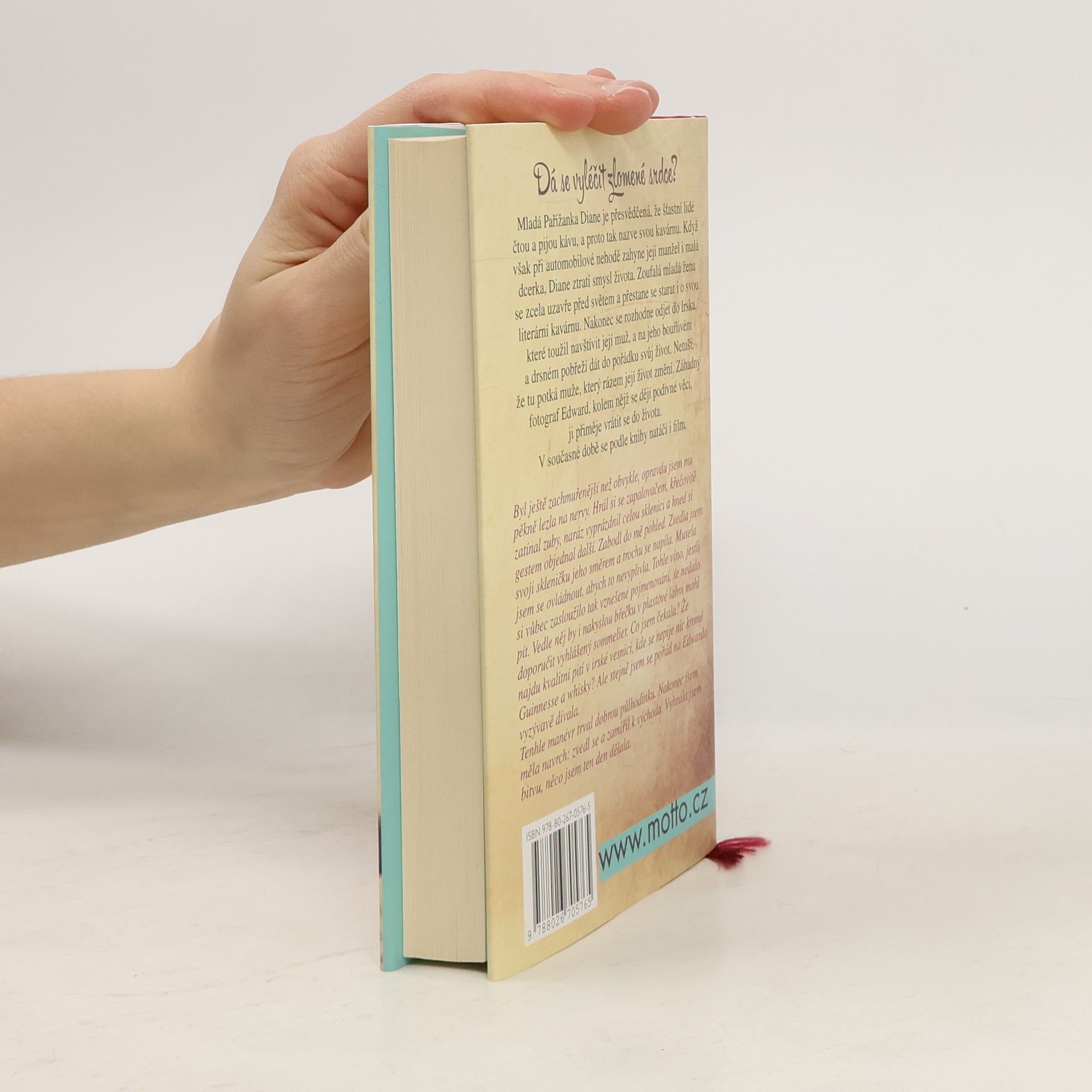 Dá se vyléčit zlomené srdce? Mladá Pařížanka Diane je přesvědčená, že šťastní lidé čtou a pijou kávu, a proto tak nazve svou kavárnu. Když však při automobilové nehodě zahyne její manžel i malá dcerka, Diane ztratí smysl života. Zcela se uzavře před světem a přestane se starat i o svou literární kavárnu. Nakonec se rozhodne odjet do Irska, které toužil navštívit její muž, a na jeho bouřlivém a drsném pobřeží dát do pořádku svůj život. Netuší, že tu potká muže, který rázem její život změní. Záhadný fotograf Edward, kolem nějž se dějí podivné věci, ji přiměje vrátit se do života. V současné době se podle knihy natáčí i film.
