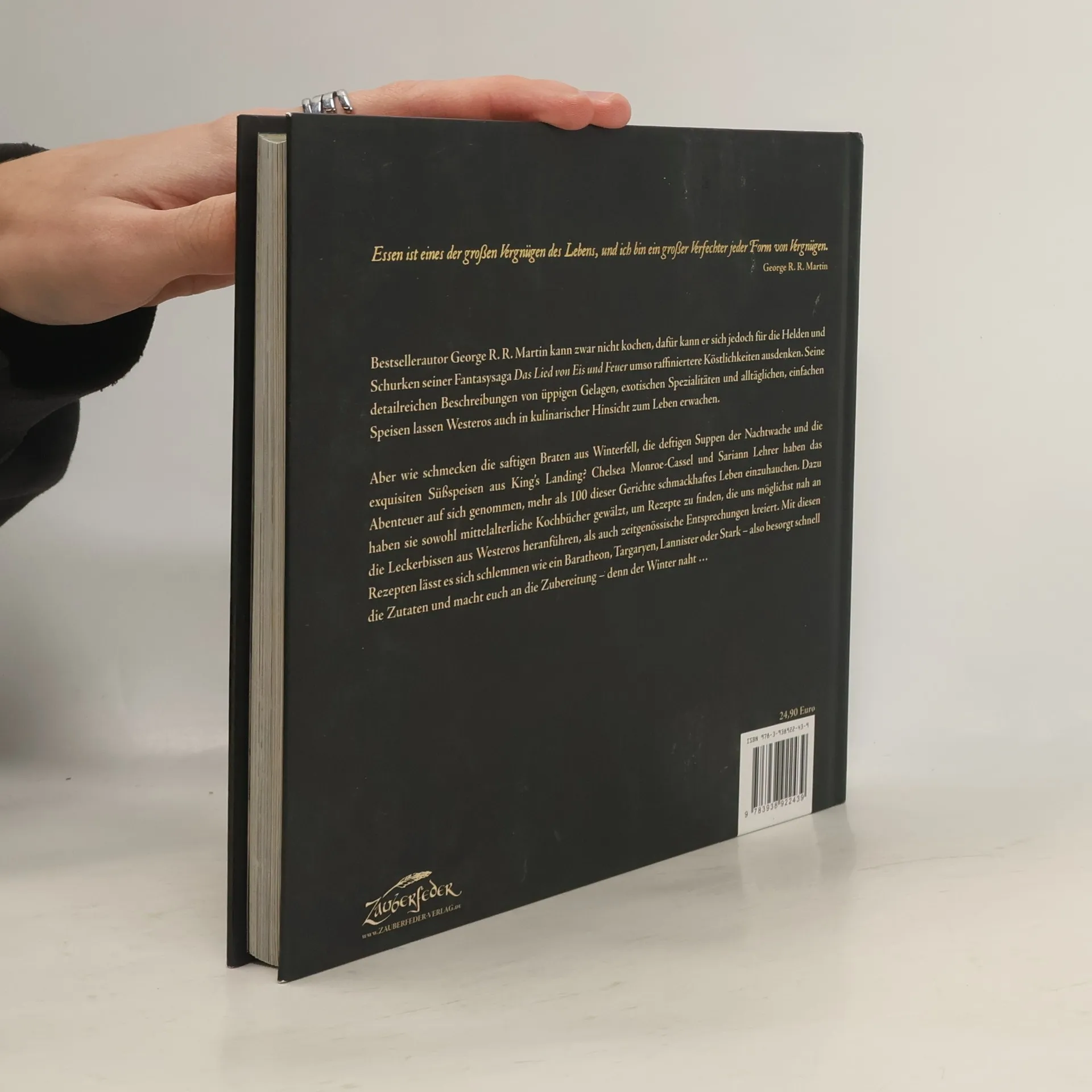 Bestsellerautor George R. R. Martin kann zwar nicht kochen, dafür kann er sich jedoch für die Helden und Schurken seiner Fantasysaga Das Lied von Eis und Feuer umso raffiniertere Köstlichkeiten ausdenken. Seine detailreichen Beschreibungen von üppigen Gelagen, exotischen Spezialitäten und alltäglichen, einfachen Speisen lassen Westeros auch in kulinarischer Hinsicht zum Leben erwachen. Aber wie schmecken die saftigen Braten aus Winterfell, die deftigen Suppen der Nachtwache und die exquisiten Süßspeisen aus King’s Landing? Chelsea Monroe-Cassel und Sariann Lehrer haben das Abenteuer auf sich genommen, mehr als 100 dieser Gerichte schmackhaftes Leben einzuhauchen. Dazu haben sie sowohl mittelalterliche Kochbücher gewälzt, um Rezepte zu finden, die uns möglichst nah an die Leckerbissen aus Westeros heranführen, als auch zeitgenössische Entsprechungen kreiert. Mit diesen Rezepten lässt es sich schlemmen wie ein Baratheon, Targaryen, Lannister oder Stark – also besorgt schnell die Zutaten und macht euch an die Zubereitung – denn der Winter naht … „Essen ist eines der großen Freuden des Lebens, und ich bin ein großer Verfechter jeder Form von Vergnügen.“ George R. R. Martin