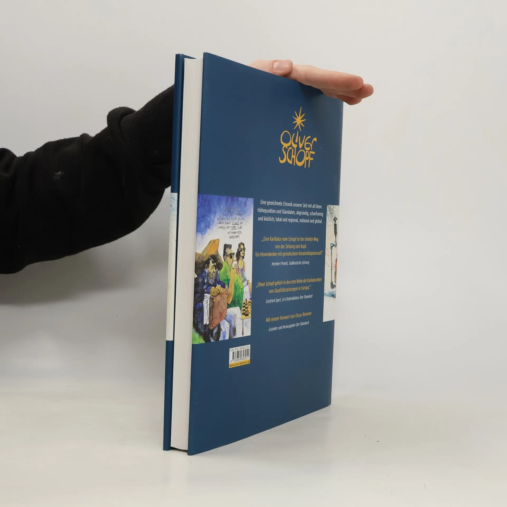 „Eine Karikatur vom Schopf ist der direkte Weg von der Zeitung zum Kopf. Ein Hineindenker mit genialischem Kreativitätspotenzial!“ Heribert Prantl, Mitglied der Chefredaktion der „Süddeutschen Zeitung“ Eine Chronik unserer Zeit mit all ihren Höhepunkten und Skandalen, abgründig, scharfsinnig und köstlich; lokal und regional, national und global. Erstmals wird das Schaffen von Oliver Schopf in einem Band gezeigt und ein Auszug seines rund 8000 Zeichnungen umfassenden OEuvres der Flüchtigkeit der Tagespresse entrissen. Der österreichische Karikaturist philosophiert zeichnerisch, und zwar über alle Grenzen hinweg: ob Karikatur, Prozess oder Bildergeschichte, ob in Farbe oder Schwarzweiß – er ist in allen Formaten zu Hause und dabei authentisch und sich selbst treu geblieben. Der „Standard“ kann sich glücklich schätzen, Oliver Schopf seit 25 Jahren als Hauskarikaturisten zu haben. Schopf bezieht in seinen großartig gezeichneten politischen Kommentaren tagtäglich Stellung zu aktuellen Sachverhalten aus Politik, Wirtschaft, Weltgeschehen und dem Alltag. Seine lakonisch-realistischen Werke legen dabei den Finger in so manch offene Wunde.
