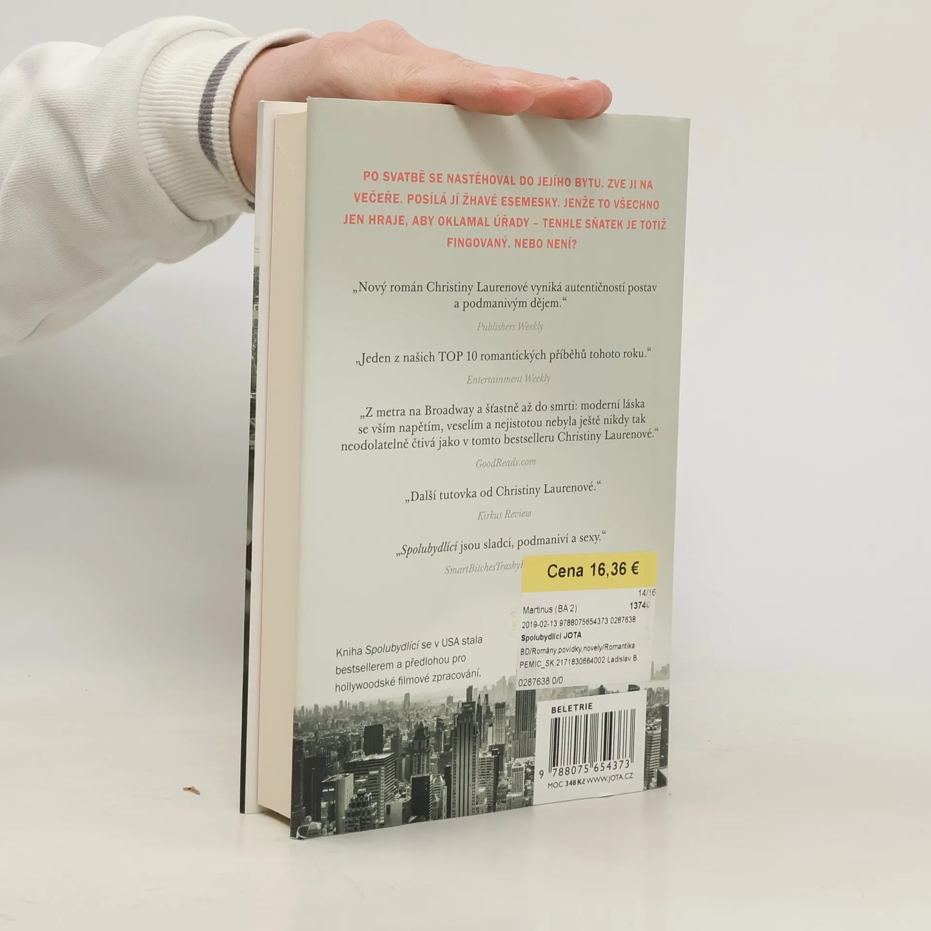 Když svatbou vztah nekončí, ale teprve začíná… Holland Bakkerová má byteček na Manhattanu, nenáročnou asistentskou práci v divadle a touhu stát se spisovatelkou. Už šest měsíců ale nenapsala ani řádku. Místo toho den co den postává ve stanici metra na Padesáté ulici a dychtivě poslouchá, když hraje On. Calvin, chlap s těma nejuhrančivějšíma zelenýma očima, neodolatelným irským přízvukem a ďábelskými prsty na strunách kytary. Právě takového sólistu by nutně potřebovali v divadle, které vede Hollandin strýc. Jenže to má drobný háček: Calvin je ve Státech už pár let nelegálně. Nenašla by se nějaká cesta, jak pro něj získat povolení k pobytu? Co třeba fingovaný sňatek? Christina Laurenová – je vůbec třeba něco dodávat? Přichází další romantický i zábavný příběh nejen pro čtenářky, které si oblíbily románové série Vášnivý a Božský. Tentokrát společně nakoukneme do oslnivého světa muzikálových divadel na Broadwayi, ale i do newyorských ulic, barů a samozřejmě také do ložnice hlavních hrdinů. Kniha Spolubydlící se v USA stala bestsellerem a předlohou pro hollywoodské filmové zpracování.