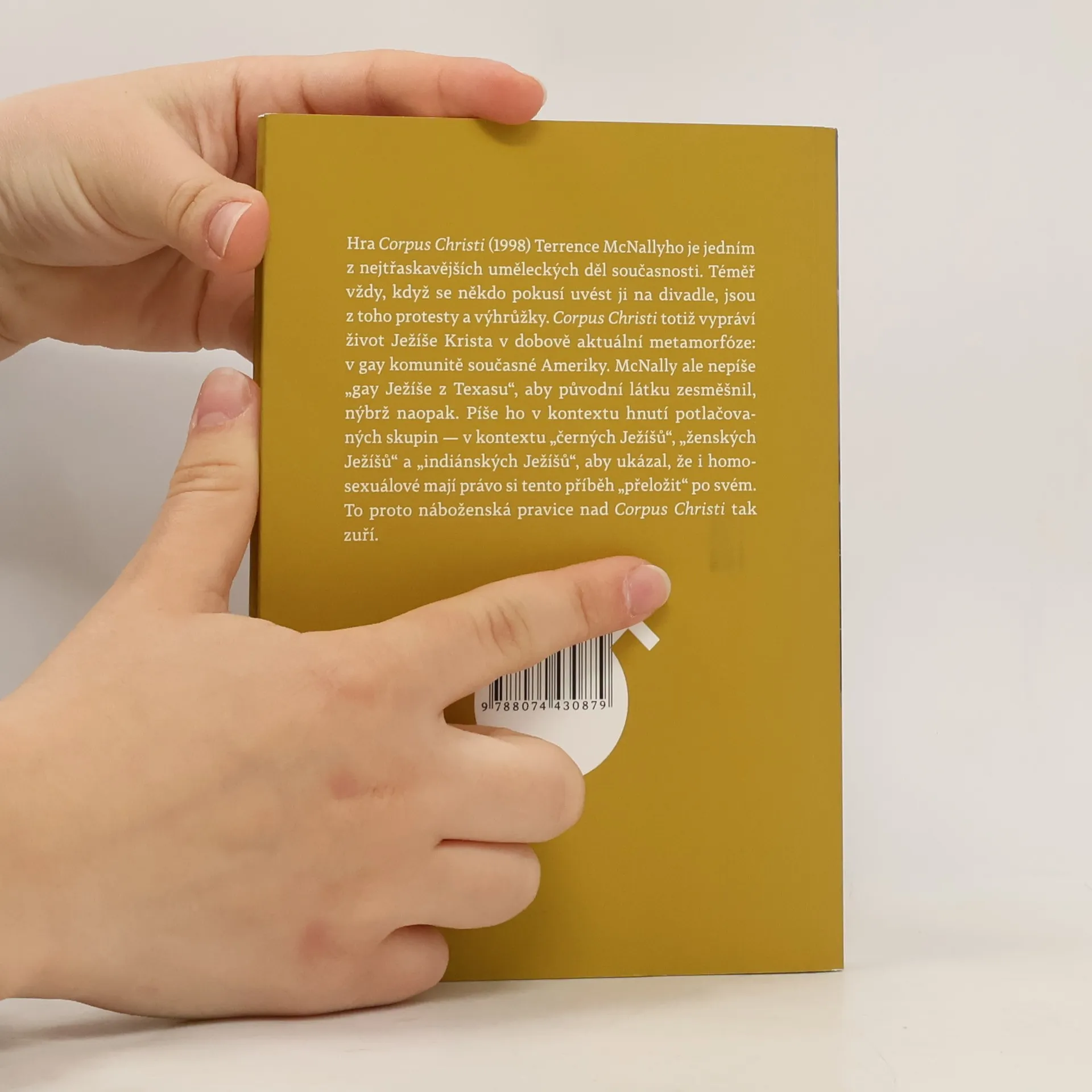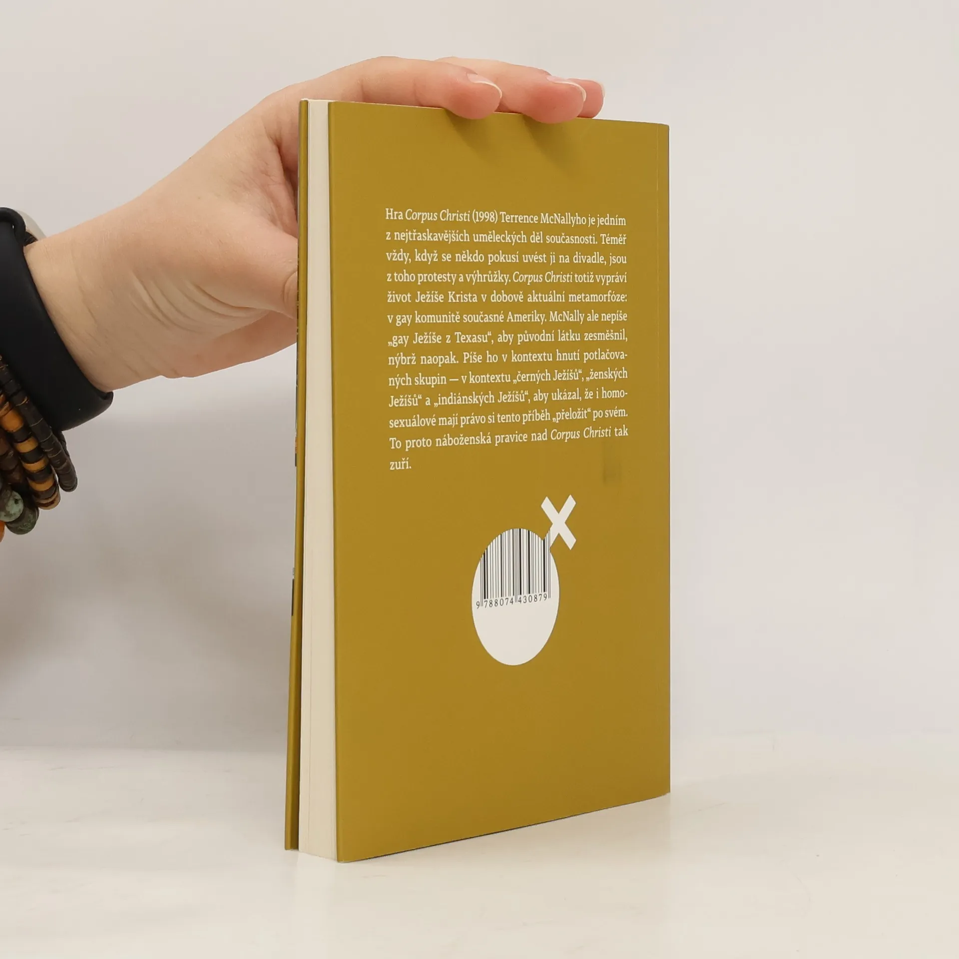 Hra Corpus Christi (1998) Terrence McNallyho je jedním z nejtřaskavějších uměleckých děl současnosti. Téměř vždy, když se někdo pokusí uvést ji na divadle, jsou z toho protesty a výhrůžky. Corpus Christi totiž vypráví život Ježíše Krista v dobově aktuální metamorfóze: v gay komunitě současné Ameriky. McNally ale nepíše „gay Ježíše z Texasu“, aby původní látku zesměšnil, nýbrž naopak. Píše ho v kontextu hnutí potlačovaných skupin – v kontextu „černých Ježíšů“, „ženských Ježíšů“ a „indiánských Ježíšů“, aby ukázal, že i homosexuálové mají právo si tento příběh „přeložit“ po svém. To proto náboženská pravice nad Corpus Christi tak zuří.