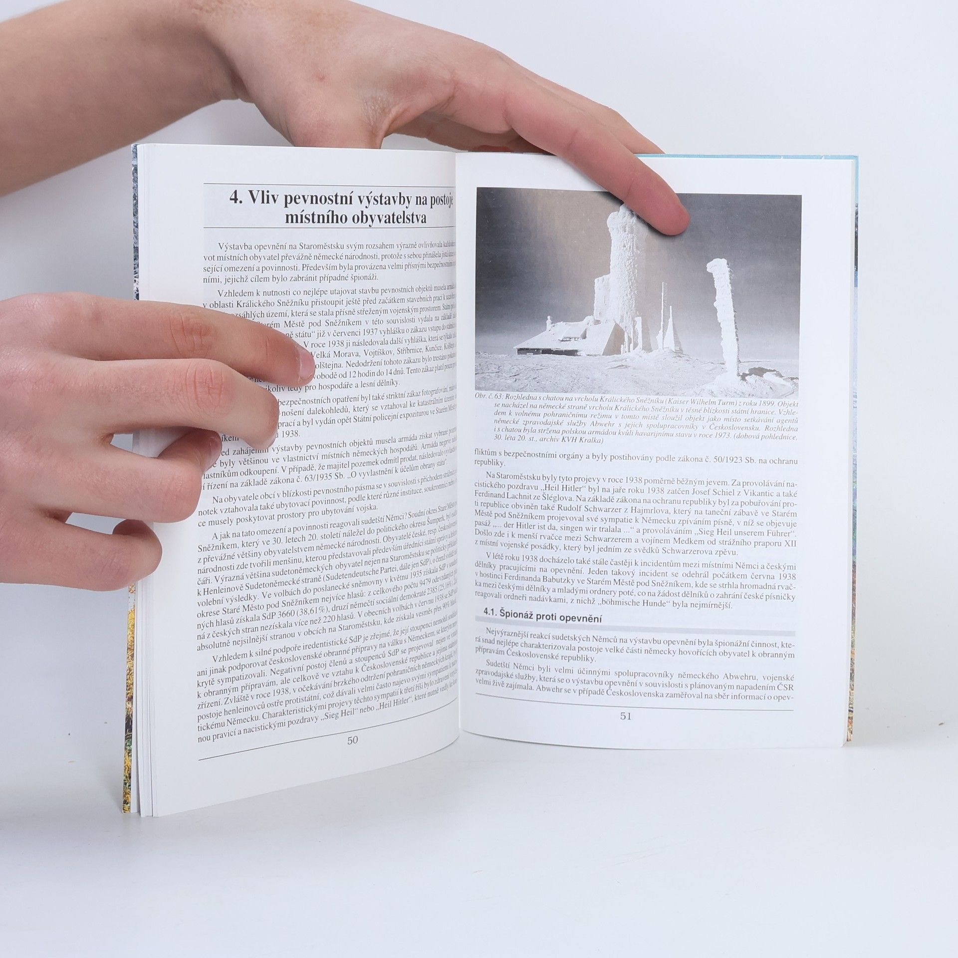 V první části se autoři věnují výstavbě opevnění (těžkého i lehkého) na hřebenech Králického Sněžníku, popisují stav prací k 30. 9. 1938 a současný stav. Další kapitoly sledují organizaci obrany v prostoru Králického Sněžníku ve 30. letech 20. století, postoje místního obyvatelstva k tehdejší vnitropolitické situaci a všímají si i špionážních akcí v prostoru výstavby opevnění. Zajímavé jsou i připojené vzpomínky pamětníků na vojenskou službu v r. 1938. Závěrečné přílohy tvoří různé technické tabulky a výkresy jednotliých objektů těžkého opevnění. Celý text doprovázejí zajímavé fotografie.