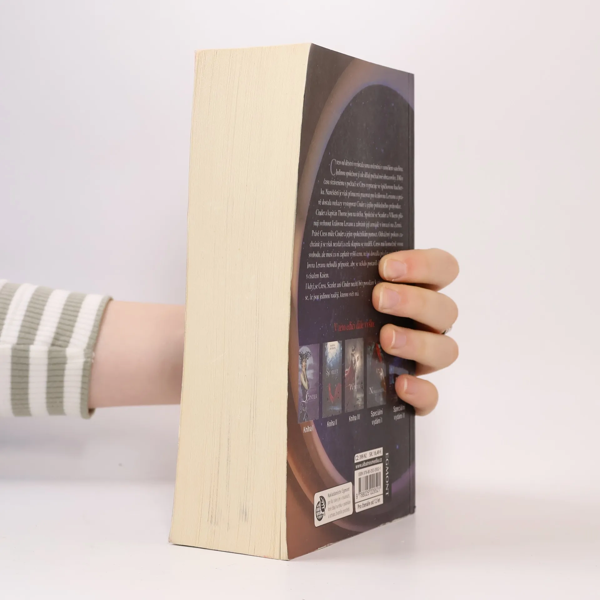 Cress od dětství vyrůstala sama uvězněná v umělém satelitu. Jedinou společnost jí zde dělají počítačové obrazovky. Díky času strávenému s počítači se Cress vypracuje ve špičkovou hackerku. Naneštěstí je však přinucena pracovat pro královnu Levanu a právě dostala rozkazy vystopovat Cinder a jejího pohledného průvodce. Cinder a kapitán Thorne jsou na útěku. Společně se Scarlet a Vlkem plánují svrhnout královnu Levanu a zabránit její armádě v invazi na Zemi. Právě Cress může Cinder a jejím společníkům pomoct. Odvážný pokus zachránit ji se však nezdaří a celá skupina se rozdělí. Cress má konečně svou svobodu, ale musí za ni zaplatit vyšší cenu, než si dovedla představit. A královna Levana nehodlá připustit, aby se někdo postavil do cesty její svatbě s císařem Kaiem. I když se Cress, Scarlet ani Cinder necítí být povolány k záchraně světa, zdá se, že jsou jedinou nadějí, kterou svět má.