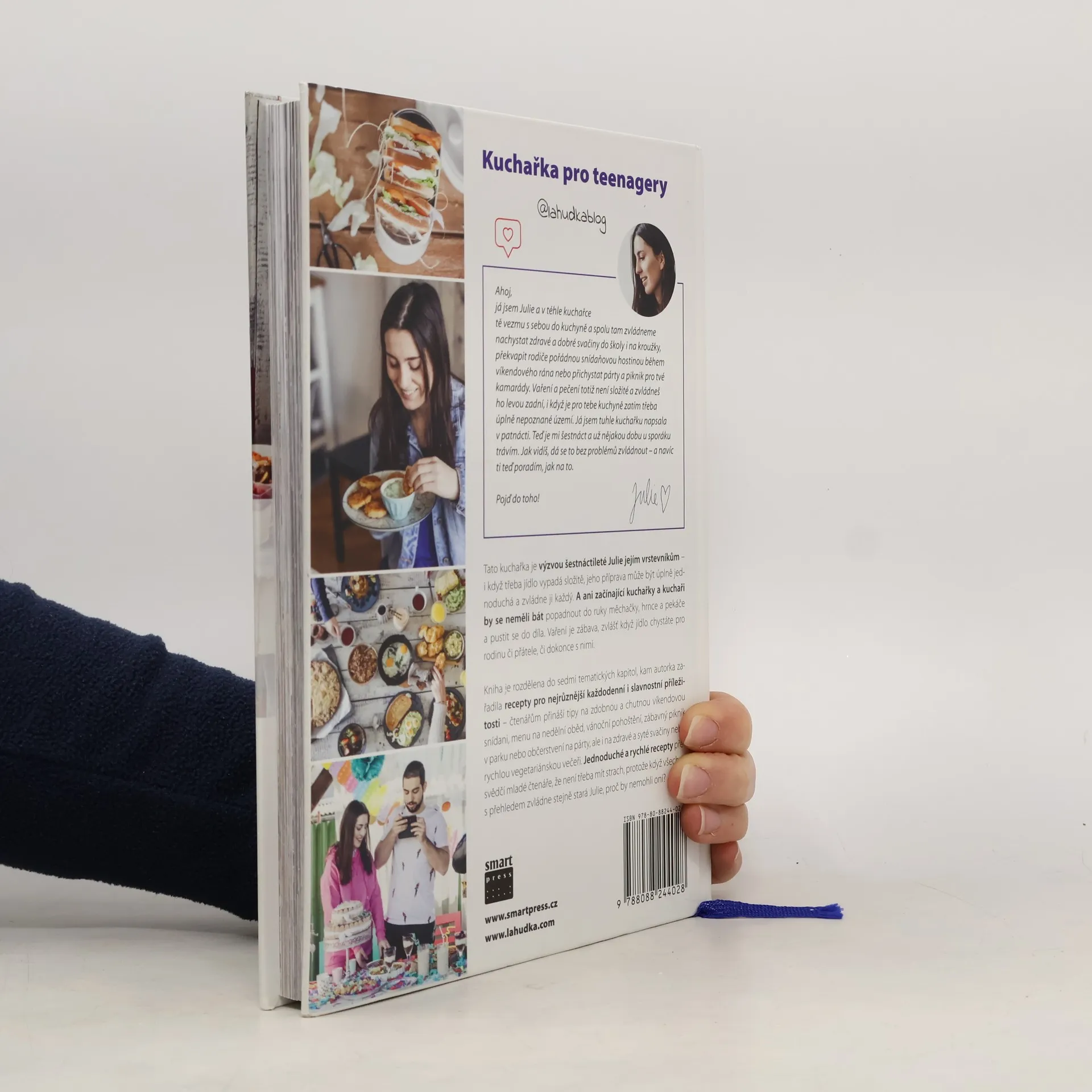 Tato kniha může být báječným dárkem ke Dni dětí, za vysvědčení či k Vánocům. Kuchařka pro teenagery je výzvou šestnáctileté Julie jejím vrstevníkům – i když třeba jídlo vypadá složitě, jeho příprava může být úplně jednoduchá a zvládne ji každý. A ani začínající kuchařky a kuchaři by se neměli bát popadnout do ruky měchačky, hrnce a pekáče a pustit se do díla. Vaření je zábava, zvlášť když jídlo chystáte pro rodinu či přátele, či dokonce s nimi. Kniha je rozdělena do sedmi tematických kapitol, kam autorka zařadila recepty pro nejrůznější každodenní i slavnostní příležitosti – čtenářům přináší tipy na zdobnou a chutnou víkendovou snídani, menu na nedělní oběd, vánoční pohoštění, zábavný piknik v parku nebo občerstvení na párty, ale i na zdravé a syté svačiny nebo rychlou vegetariánskou večeři. Jednoduché a rychlé recepty přesvědčí mladé čtenáře, že není třeba mít strach, protože když všechny s přehledem zvládne stejně stará Julie, proč by nemohli oni?