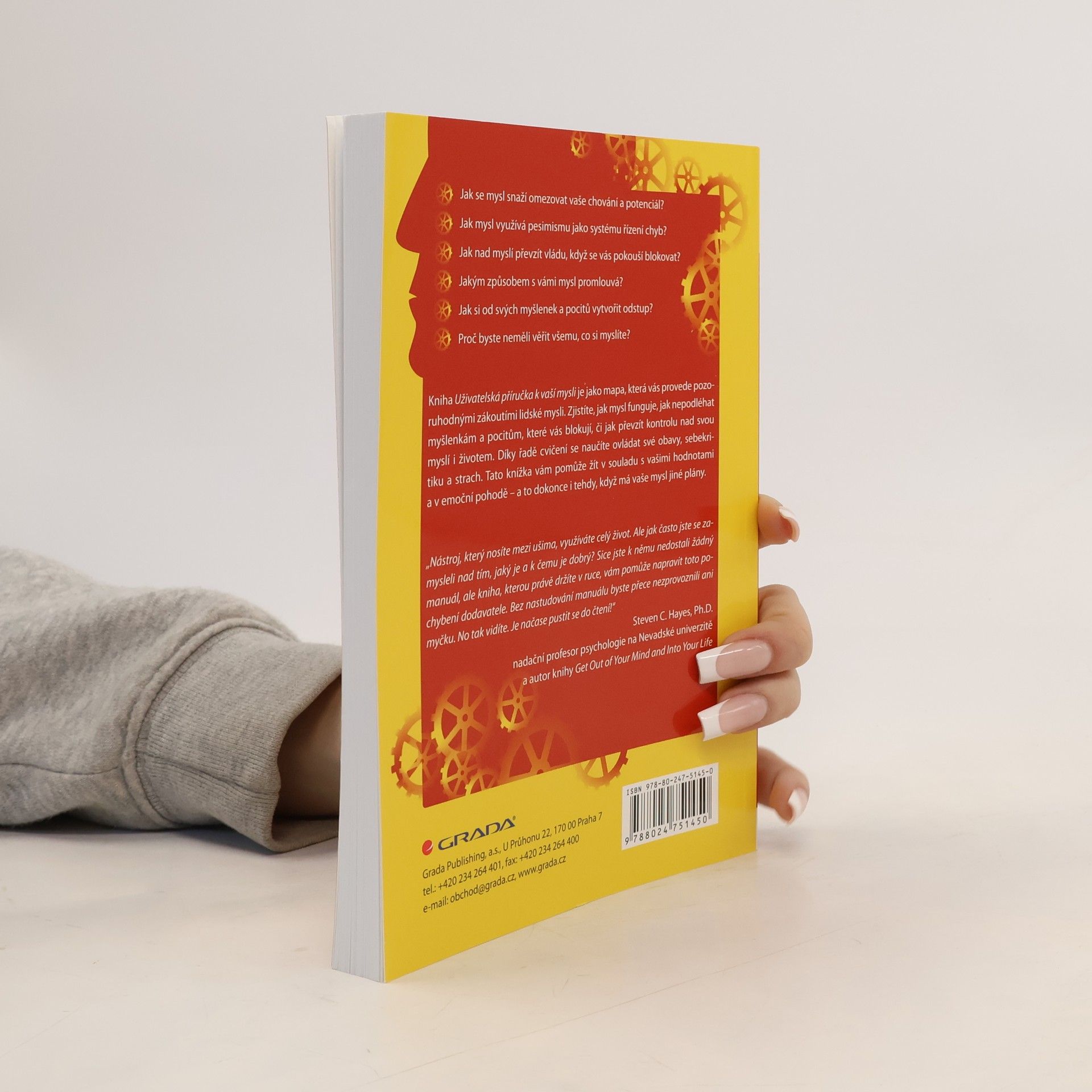 Jak se mysl snaží omezovat vaše chování a potenciál? Jak mysl využívá pesimismu jako systému řízení chyb? Jak nad myslí převzít vládu, když se vás pokouší blokovat? Jakým způsobem s vámi mysl promlouvá? Jak si od svých myšlenek a pocitů vytvořit odstup? Proč byste neměli věřit všemu, co si myslíte? Kniha Uživatelská příručka k vaší mysli je jako mapa, která vás provede pozoruhodnými zákoutími lidské mysli. Zjistíte, jak mysl funguje, jak nepodléhat myšlenkám a pocitům, které vás blokují, či jak převzít kontrolu nad svou myslí i životem. Díky řadě cvičení se naučíte ovládat své obavy, sebekritiku a strach. Tato knížka vám pomůže žít v souladu s vašimi hodnotami a v emoční pohodě – a to dokonce i tehdy, když má vaše mysl jiné plány.