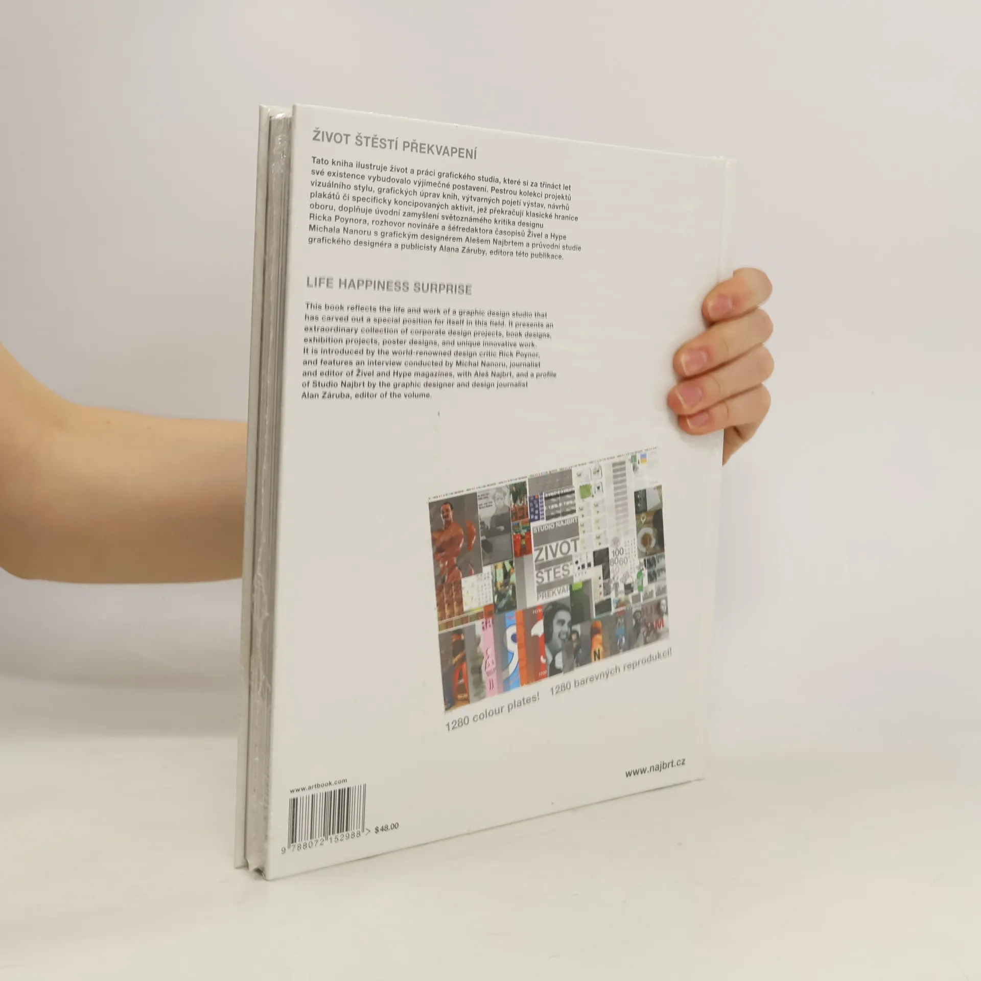 Tato kniha ilustruje život a práci grafického studia, které si za třináct let své existence vybudovalo výjimečné postavení. Pestrou kolekci projektů vizuálního stylu, grafických úprav knih, výtvarných pojetí výstav, návrhů plakátů či specificky koncipovaných aktivit, jež překračují klasické hranice oboru, doplňuje úvodní zamyšlení světoznámého kritika designu Ricka Poynora, rozhovor novináře a šéfredaktora časopisů Živel a Hype Michala Nanoru s grafickým designérem Alešem Najbrtem a průvodní studie grafického designéra a publicisty Alana Záruby, editora této publikace.