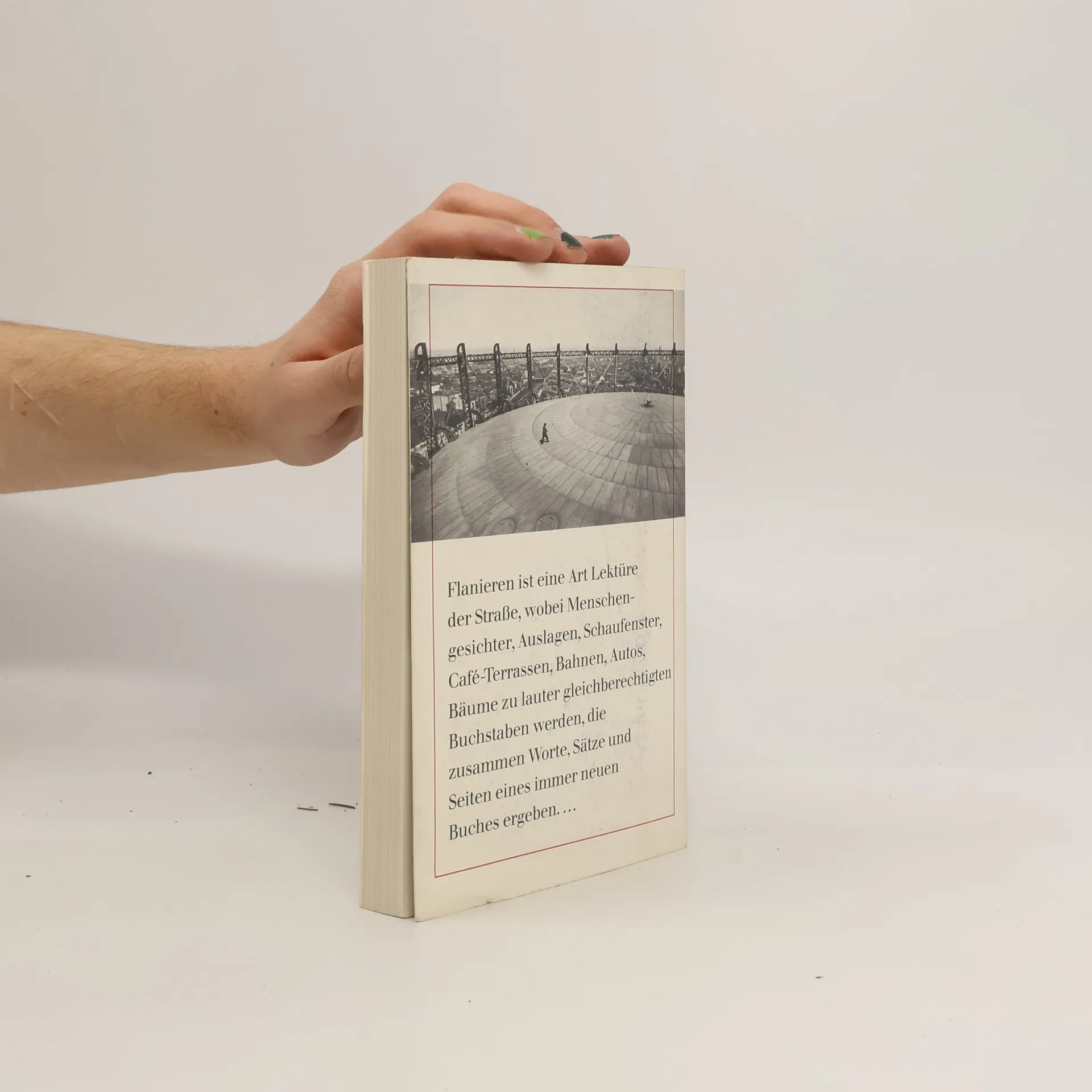 „Langsam durch belebte Straßen zu gehen, ist ein besonderes Vergnügen. Man wird überspült von der Eile der andern, es ist ein Bad in der Brandung.“ So beginnt Franz Hessel sein „Lehrbuch der Kunst, in Berlin spazieren zu gehen“, wie es 1929 auf dem Schutzumschlag der Erstausgabe von Spazieren in Berlin heißt. Als aufmerksamer Beobachter schlendert Hessel durch das lärmende Berlin der 1920er-Jahre, läuft über Plätze, durch Straßen, Fabriken und Parks, besucht den Osten mit seinen Hinterhöfen und Markthallen, den Westen mit seinen Nachtcafés und Amüsiertempeln, macht sich mit Spürsinn in die stilleren Winkel auf undentdeckt auch abseits Gelegenes. Im Flanieren streut er passend zu den Gegenständen seiner Betrachtung Interessantes aus der Geschichte Berlins ein und umgibt so die Berliner Stadtlandschaft mit einem einzigartigen Zauber. Eingeleitet durch sehr persönliche Worte des Sohnes Stéphane Hessel, Résistance-Mitglied und später langjähriger französischer Diplomat, und durch ein editorisches Vorwort des Herausgebers Moritz Reininghaus, folgt der Text von Spazieren in Berlin der Originalausgabe von 1929. Der Germanist Prof. Dr. Bernd Witte, Herausgeber der Hessel-Gesamtausgabe, setzt in seinem Nachwort das Buch in Beziehung zu Hessels Gesamtwerk und benennt den Stellenwert von Spazieren in Berlin als eines der wichtigsten Werke der modernen Metropolenliteratur.