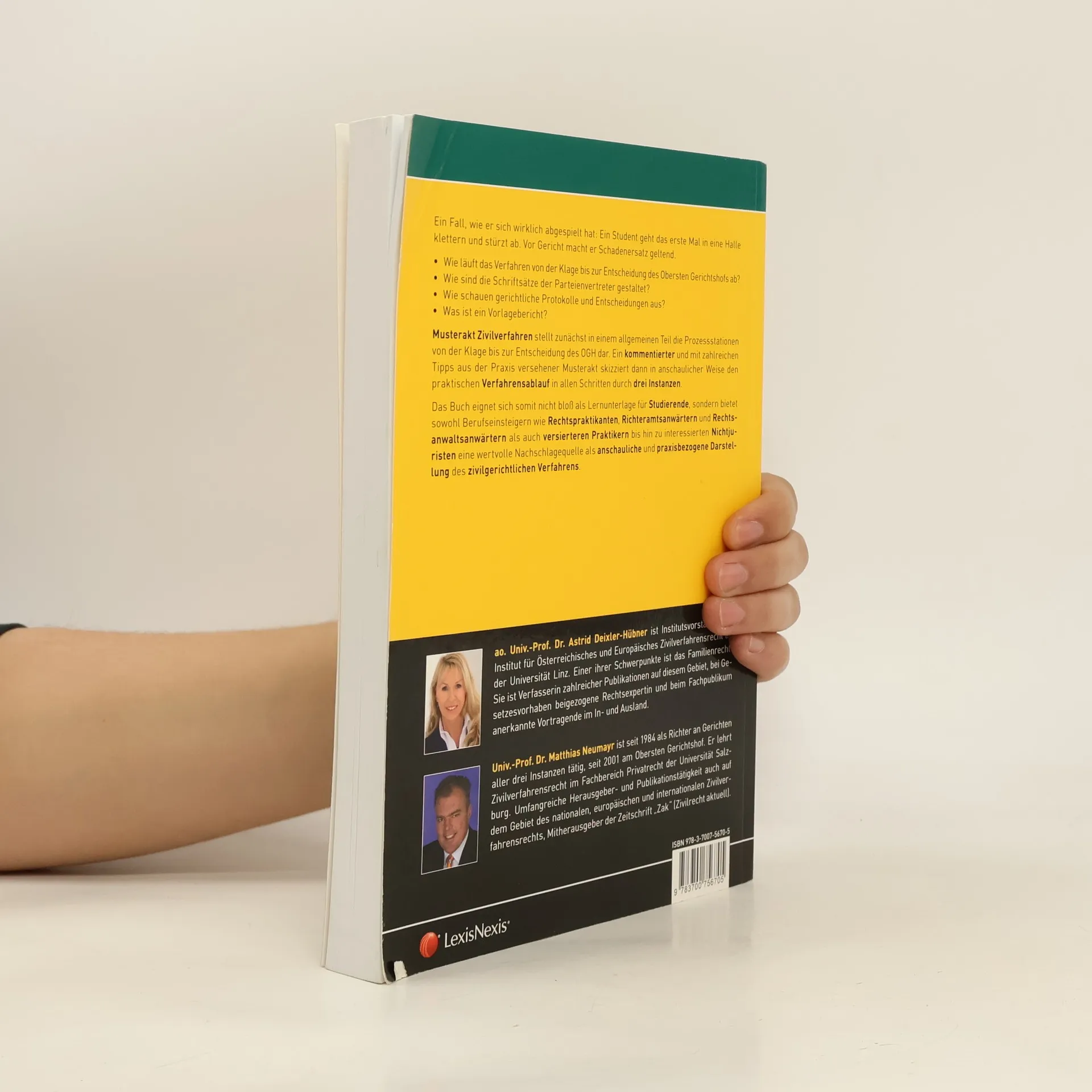 Ein Fall, wie er sich wirklich abgespielt hat: Ein Student geht das erste Mal in eine Halle klettern und stürzt ab. Vor Gericht macht er Schadenersatz geltend. - Wie läuft das Verfahren von der Klage bis zur Entscheidung des Obersten Gerichtshofs ab? - Wie sind die Schriftsätze der Parteienvertreter gestaltet? - Wie schauen gerichtliche Protokolle und Entscheidungen aus? - Was ist ein Vorlagebericht? Musterakt Zivilverfahren stellt zunächst in einem allgemeinen Teil die Prozessstationen von der Klage bis zur Entscheidung des OGH dar. Ein kommentierter und mit zahlreichen Tipps aus der Praxis versehener Musterakt skizziert dann in anschaulicher Weise den praktischen Verfahrensablauf in allen Schritten durch drei Instanzen. Das Buch eignet sich somit nicht bloß als Lernunterlage für Studierende, sondern bietet sowohl Berufseinsteigern wie Rechtspraktikanten, Richteramtsanwärtern und Rechtsanwaltsanwärtern als auch versierteren Praktikern bis hin zu interessierten Nichtjuristen eine wertvolle Nachschlagequelle als anschauliche und praxisbezogene Darstellung des zivilgerichtlichen Verfahrens.