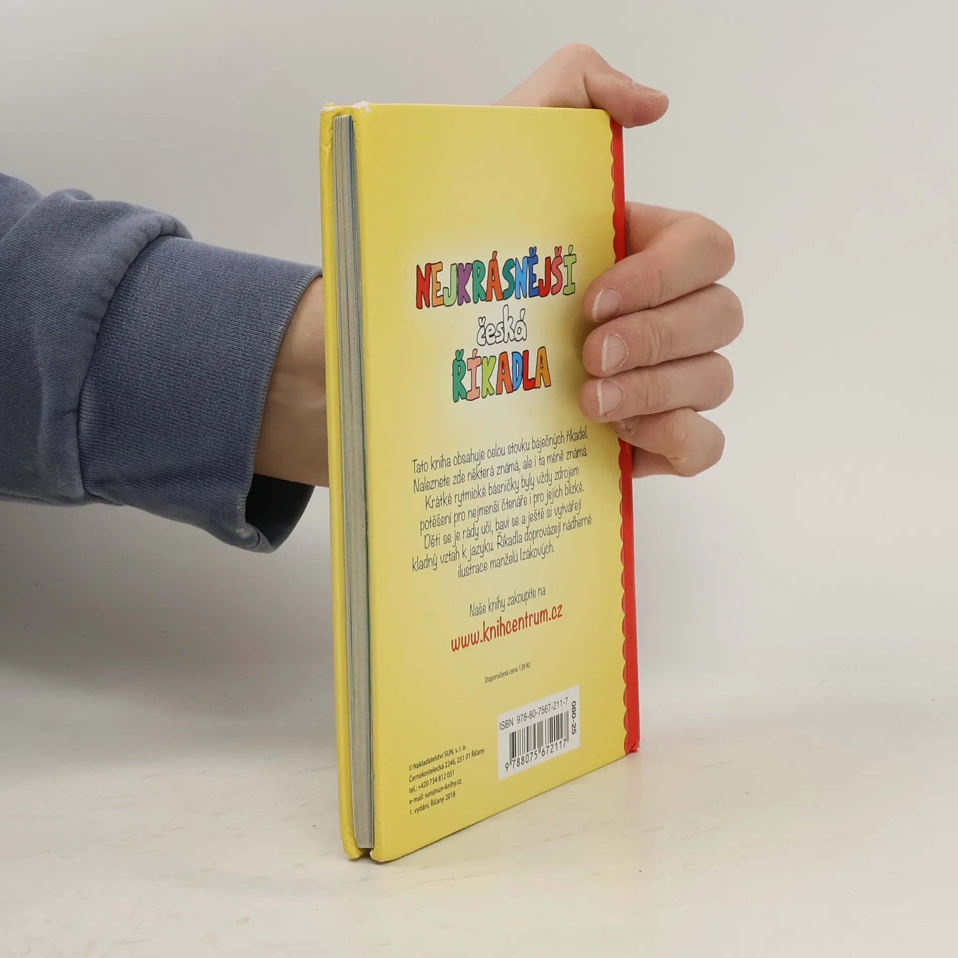 V této krásné sbírce naleznete přesně sto krásných českých říkadel, mezi nimi je například Zlatá brána otevřená, Šnečku, šnečku vystrč růžky, Běží liška k Táboru, Vařila myšička kašičku, Rak leze z díry, Žába skáče po blátě, Ententýky dva špalíky a mnohá další obecně známá. Krátké rytmické básničky byly vždy zdrojem potěšení pro nejmenší čtenáře i pro jejich blízké. Říkadla si můžete prohlížet se svými dětmi, učit se je a prohlížet si pestré obrázky od manželů Izákových.