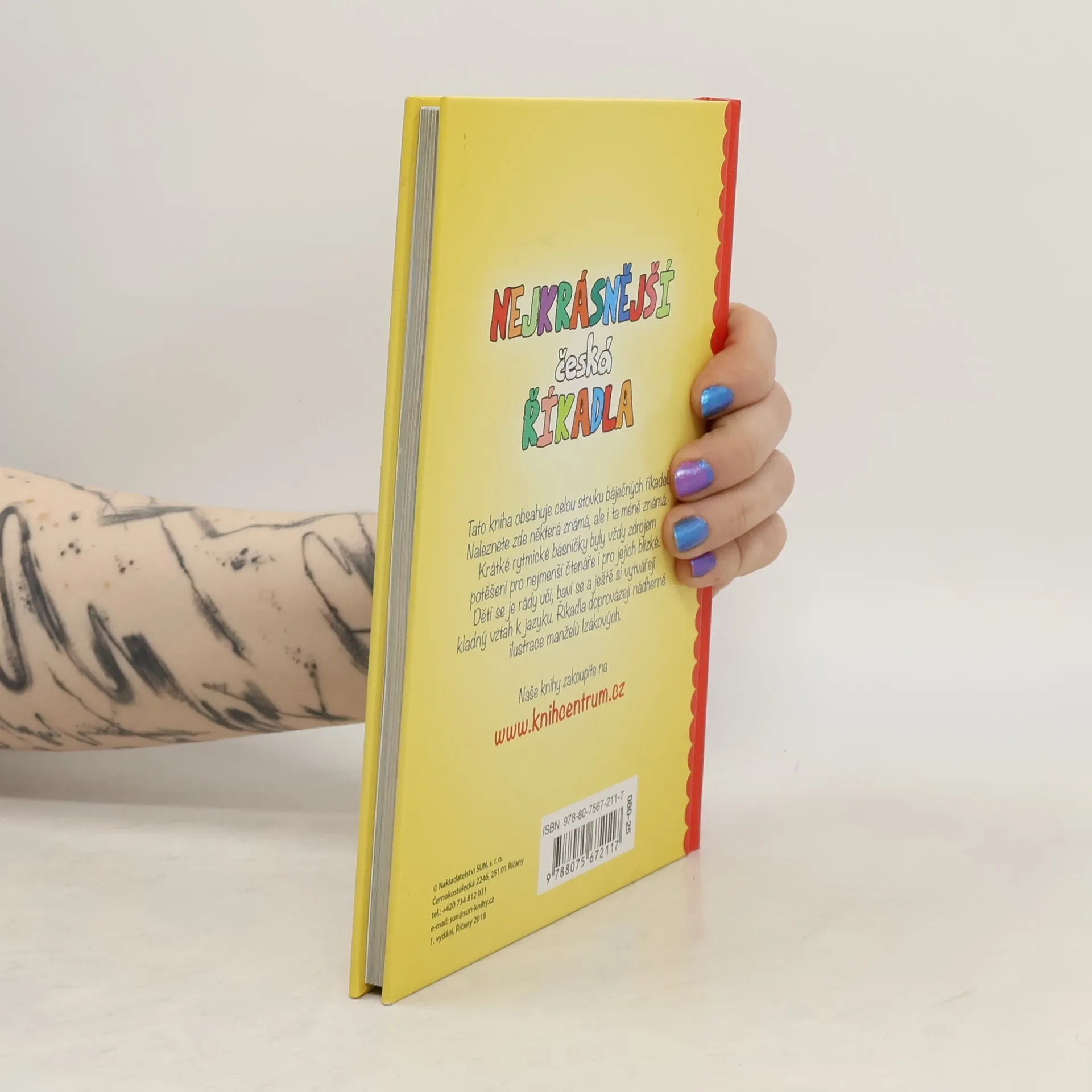 V této krásné sbírce naleznete přesně sto krásných českých říkadel, mezi nimi je například Zlatá brána otevřená, Šnečku, šnečku vystrč růžky, Běží liška k Táboru, Vařila myšička kašičku, Rak leze z díry, Žába skáče po blátě, Ententýky dva špalíky a mnohá další obecně známá. Krátké rytmické básničky byly vždy zdrojem potěšení pro nejmenší čtenáře i pro jejich blízké. Říkadla si můžete prohlížet se svými dětmi, učit se je a prohlížet si pestré obrázky od manželů Izákových.